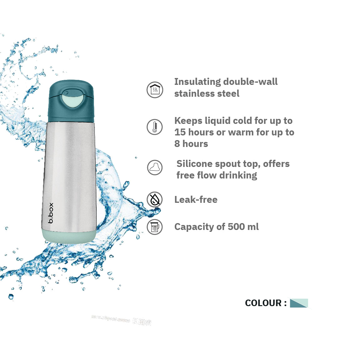 Insulated Sport Spout Drink Water Bottle 500ml Emerald Forest Green