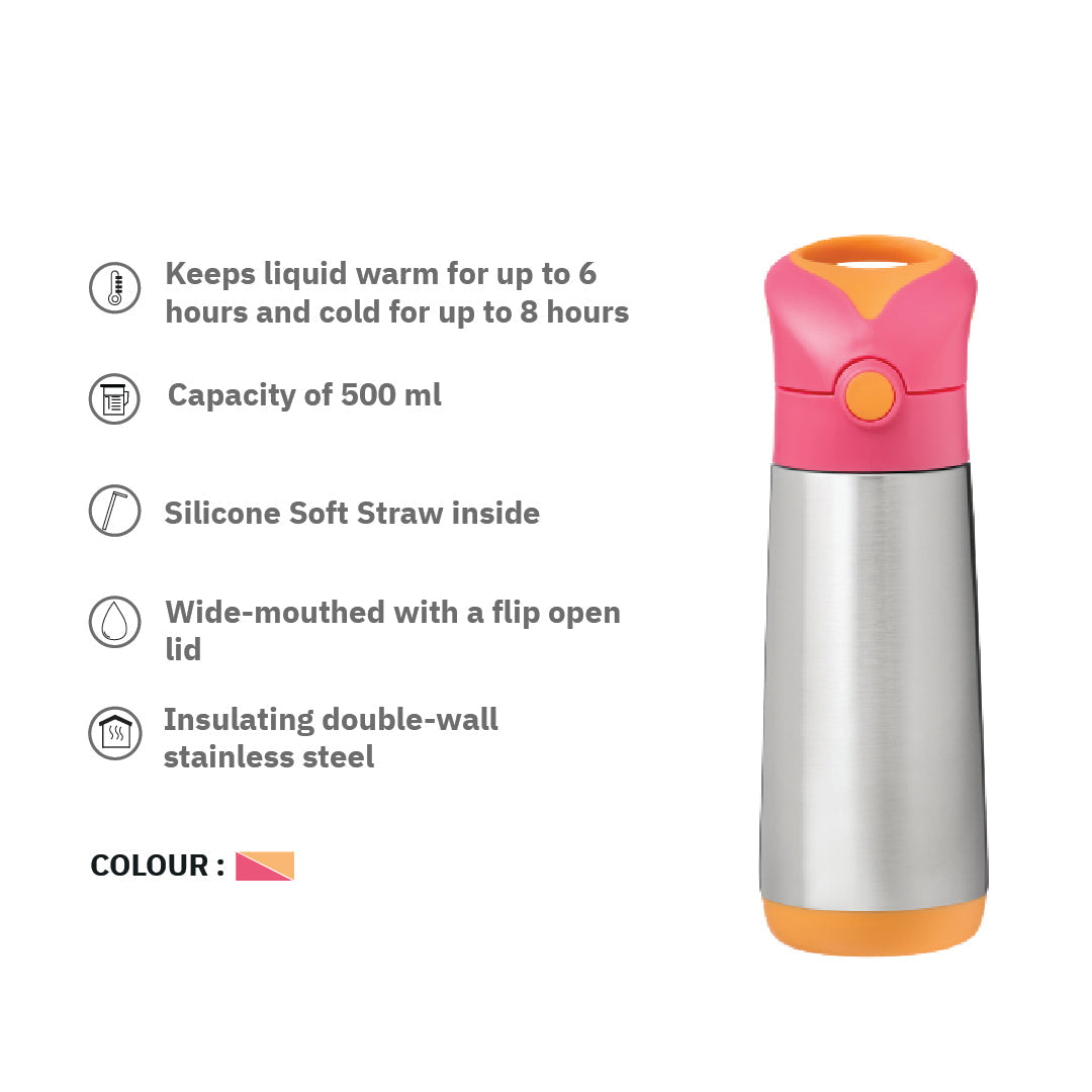 Insulated Straw Sipper Drink Water Bottle 500ml Strawberry Shake PInk Orange