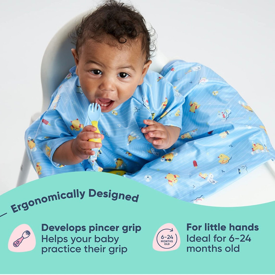 • Designed for little hands-Ergonomically designed to fit your little one's hands to encourage development of their pincer grip. Even when wet, our handy weaning cutlery is still grippy, so less likely to slip out of messy or wet fingers.