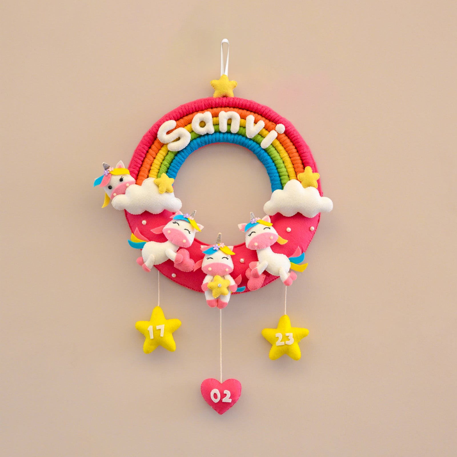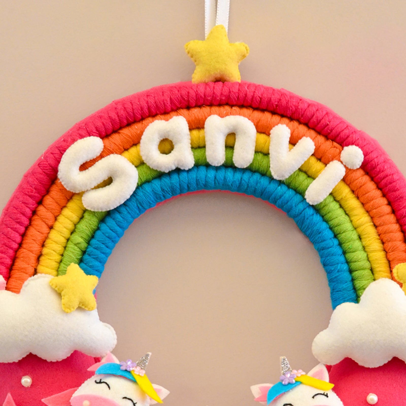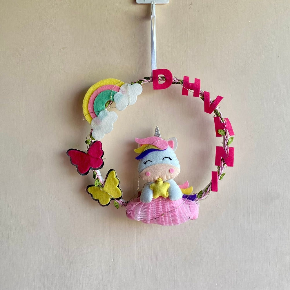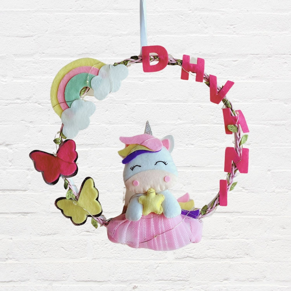 Junior Rainbow and Unicorn-Themed Custom Name macrame Wreath