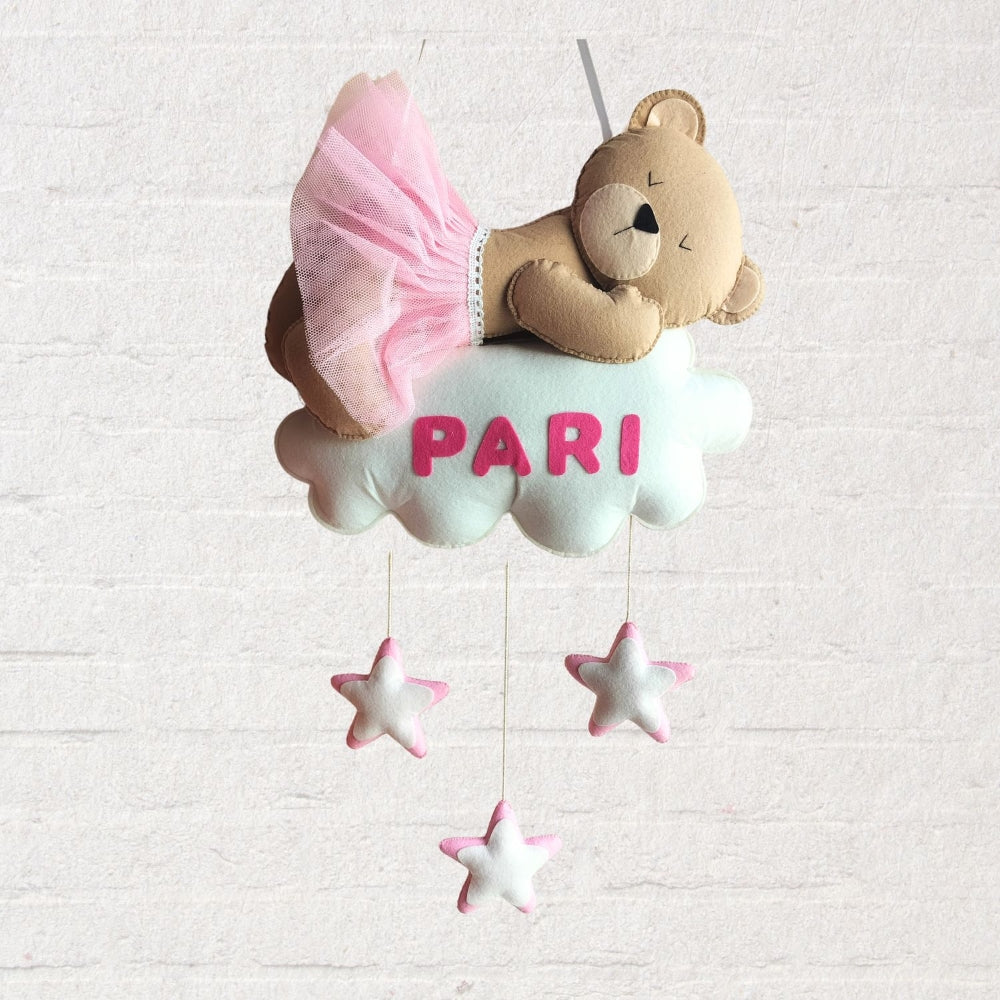 Babble Wrap Pink Teddy On a Moon Name Hanging