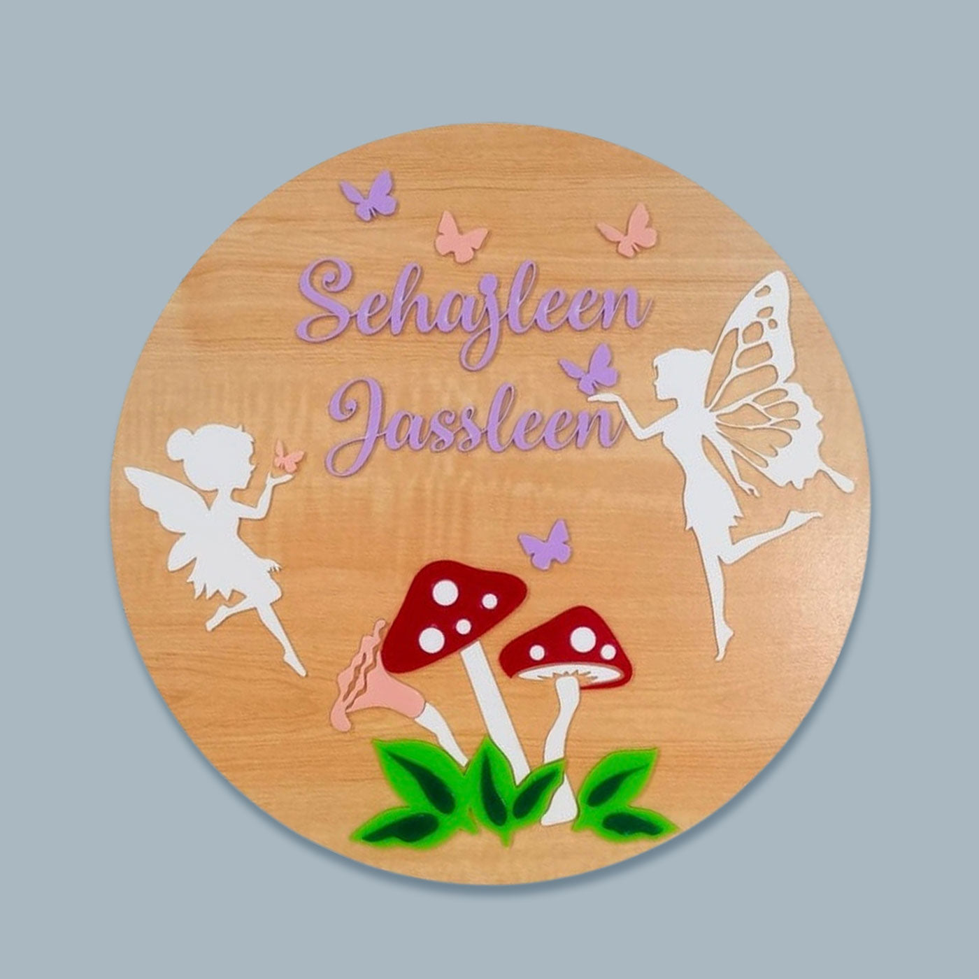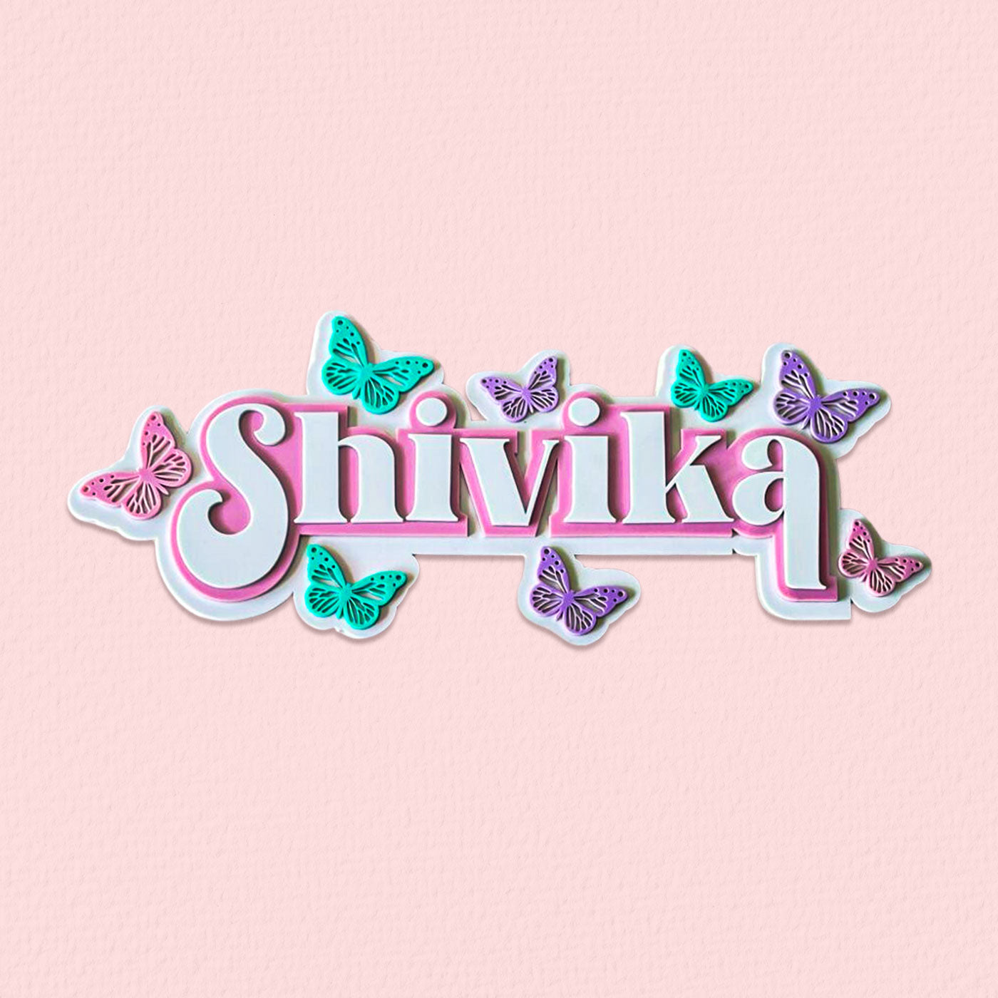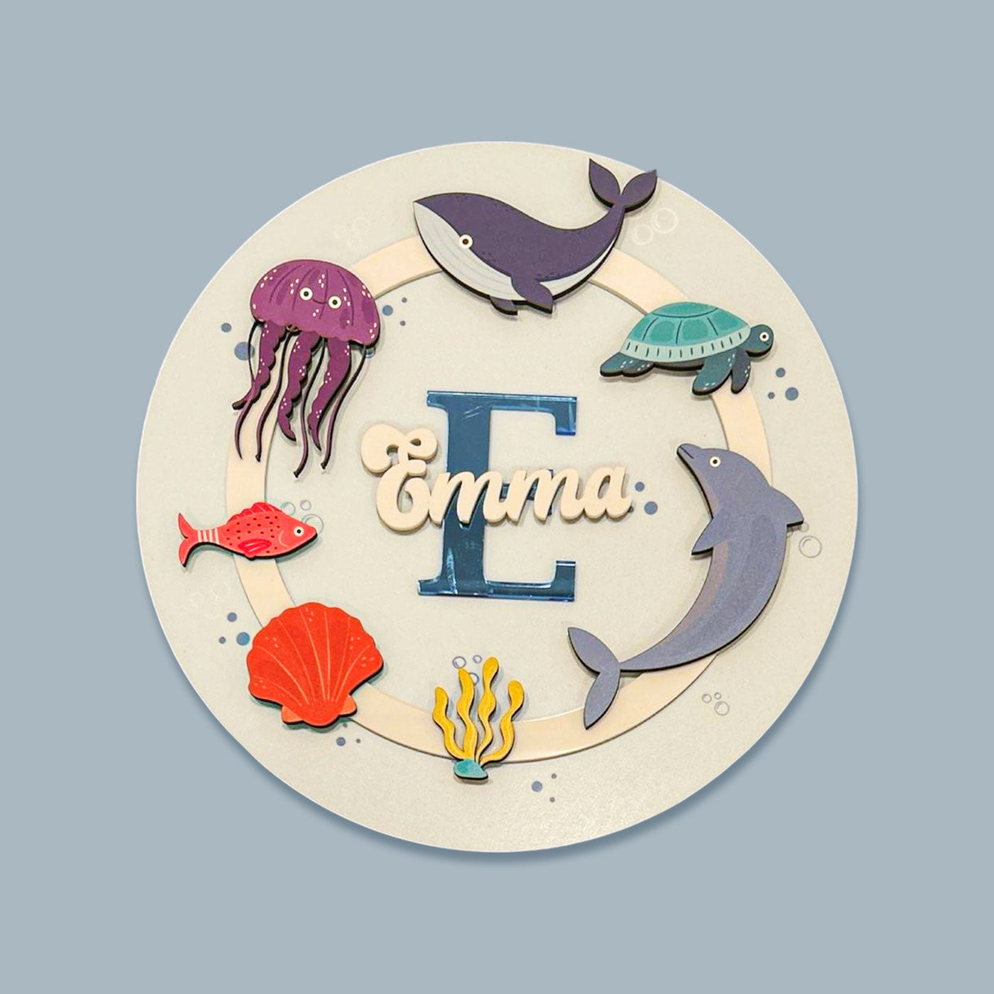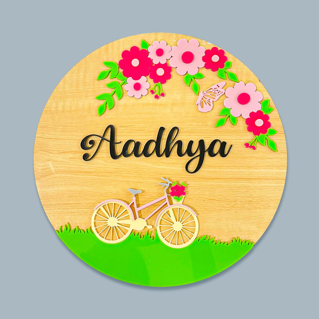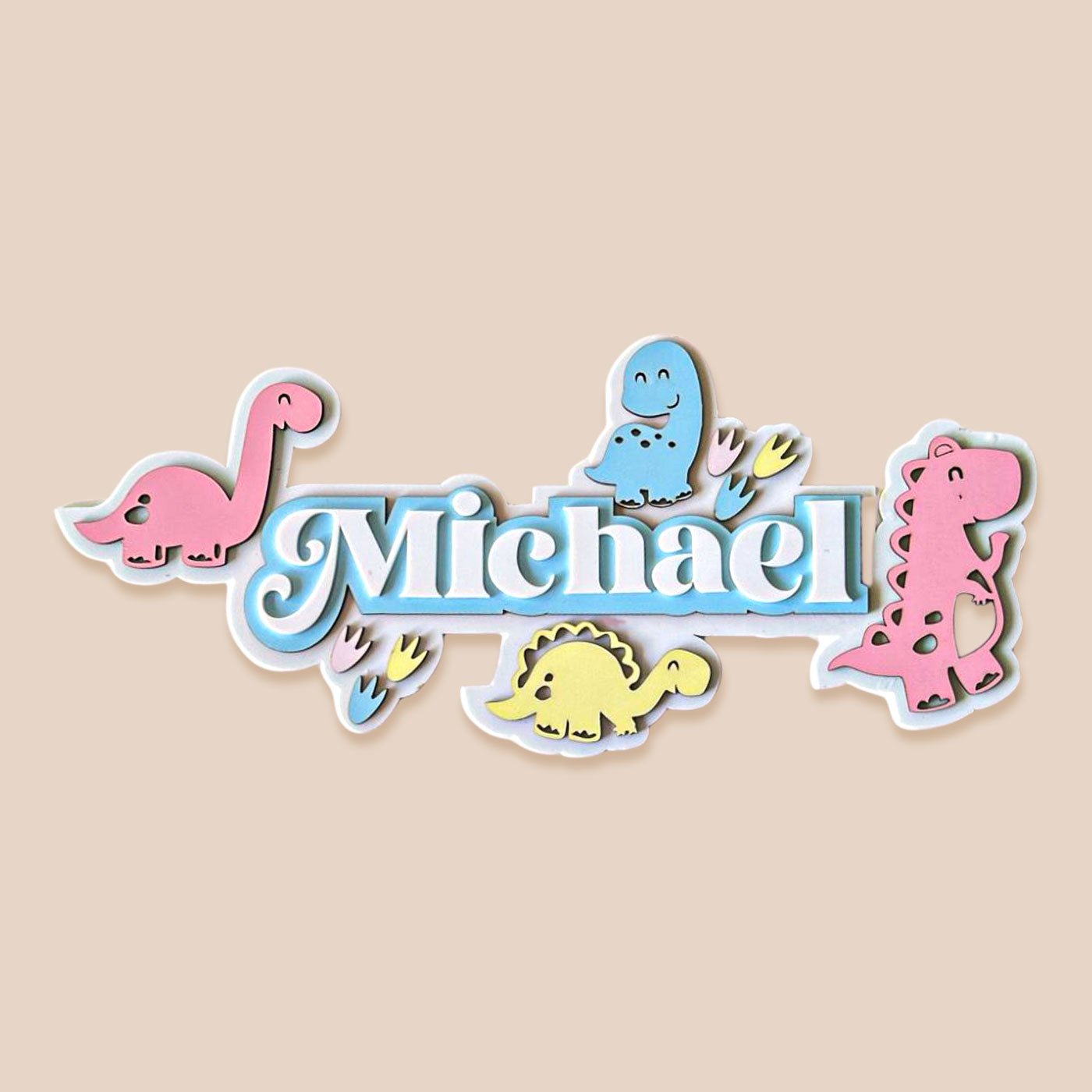 3 Layer Name Plaque- Silver White with Multiple Motif