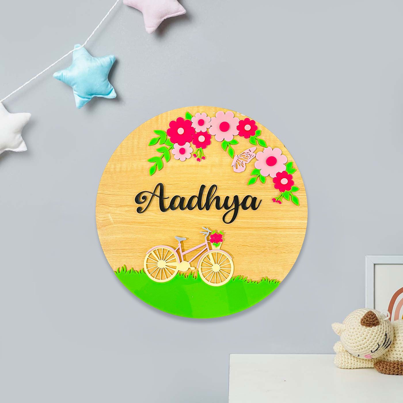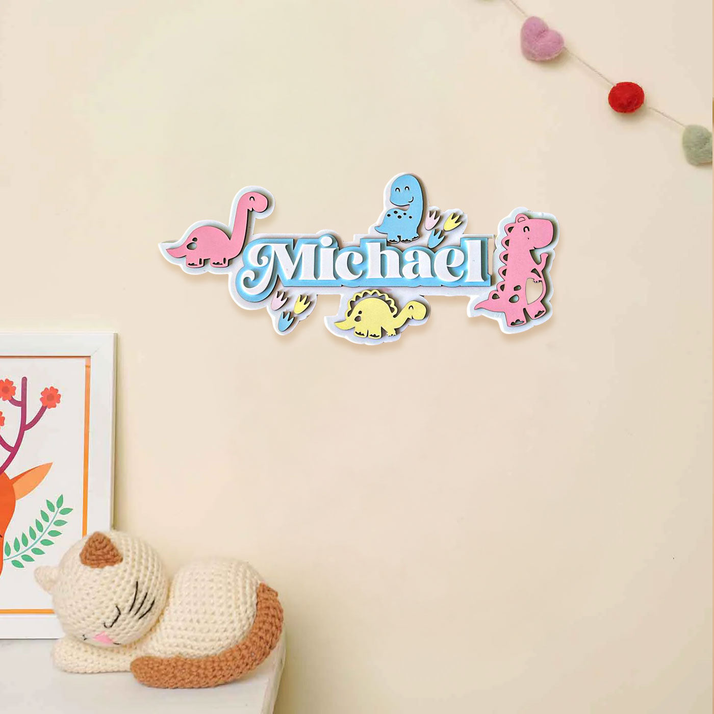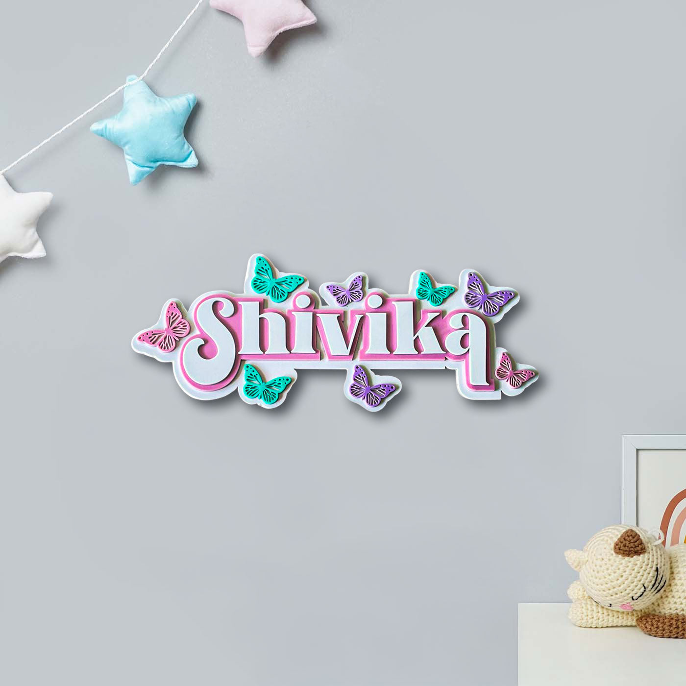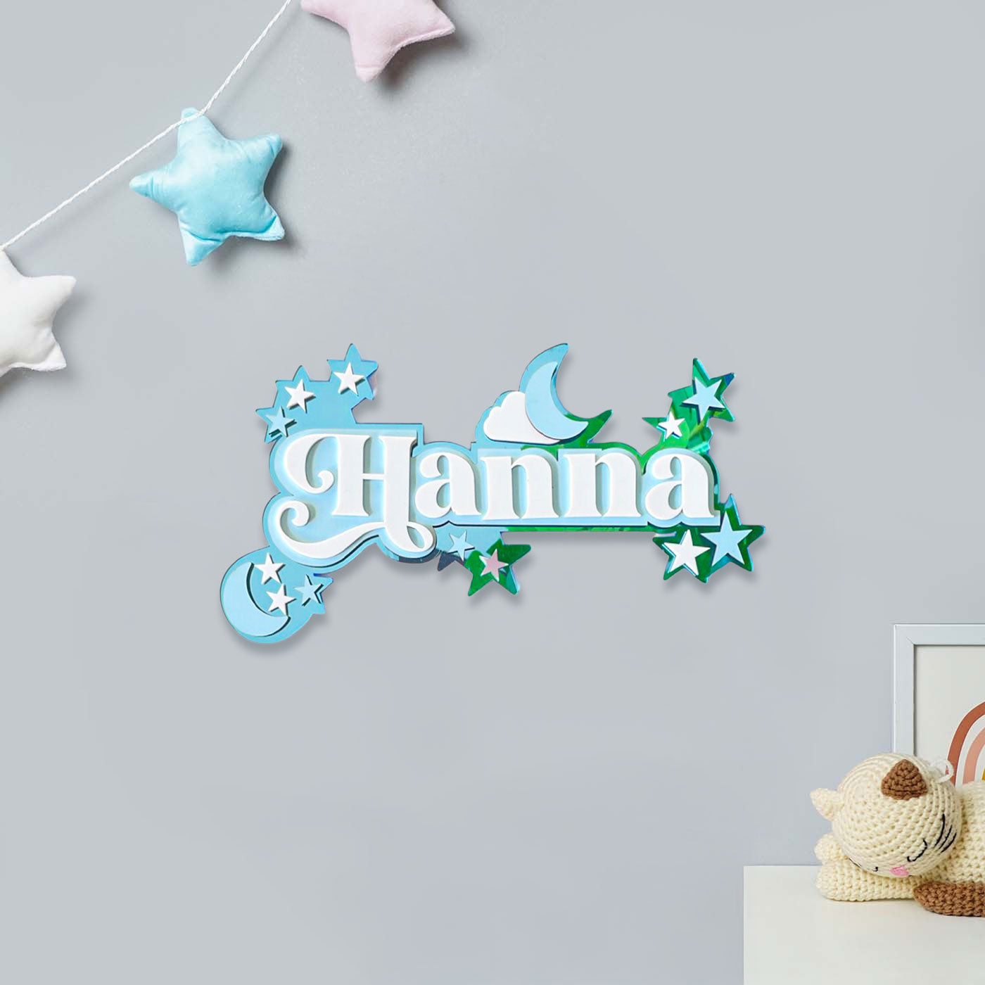 3 Layer Name Plaque- Silver White with Multiple Motif