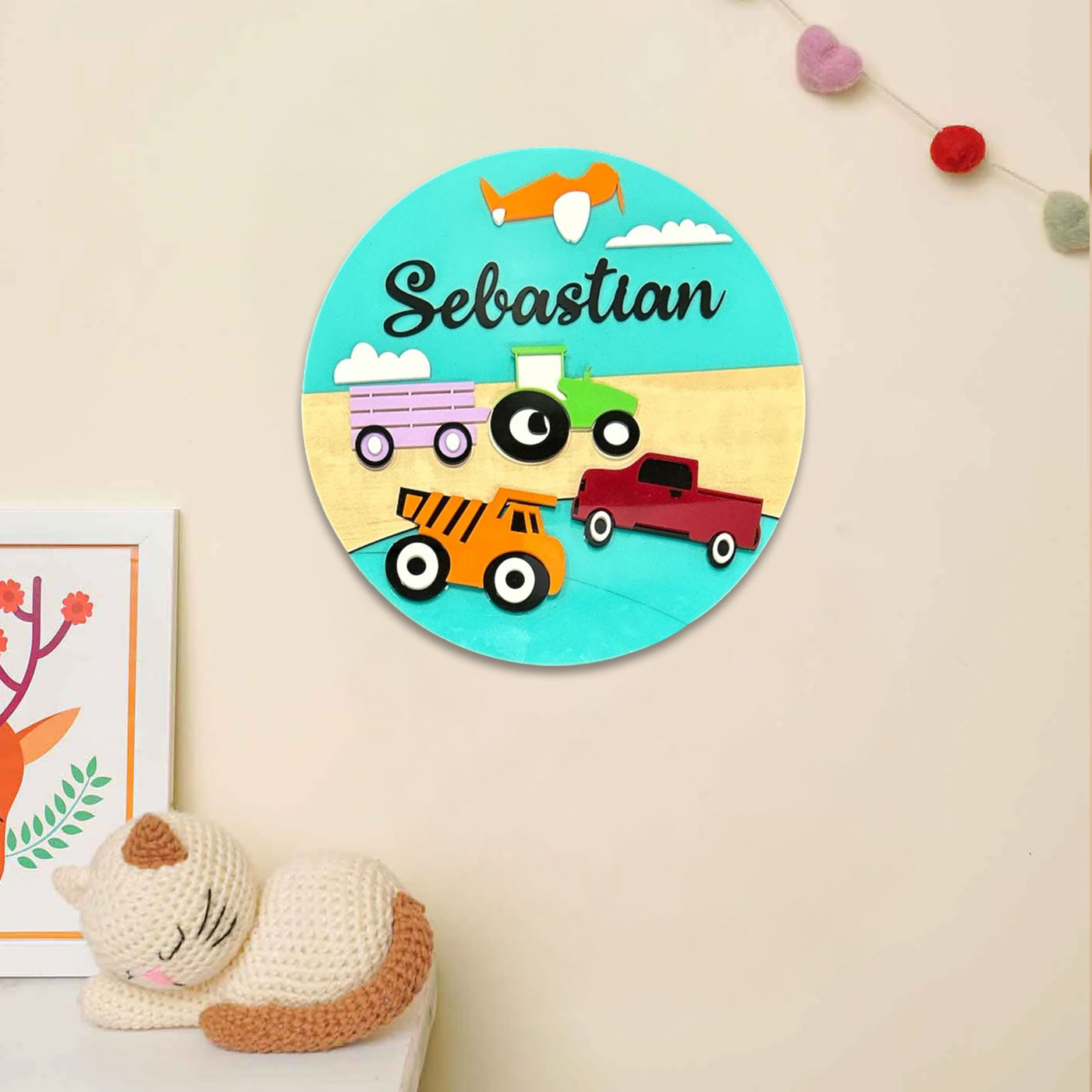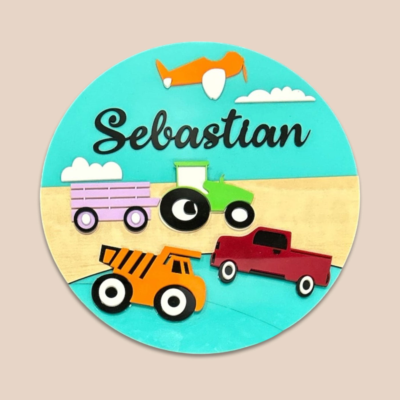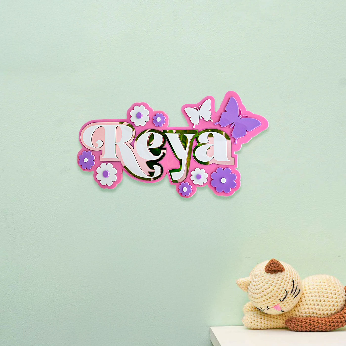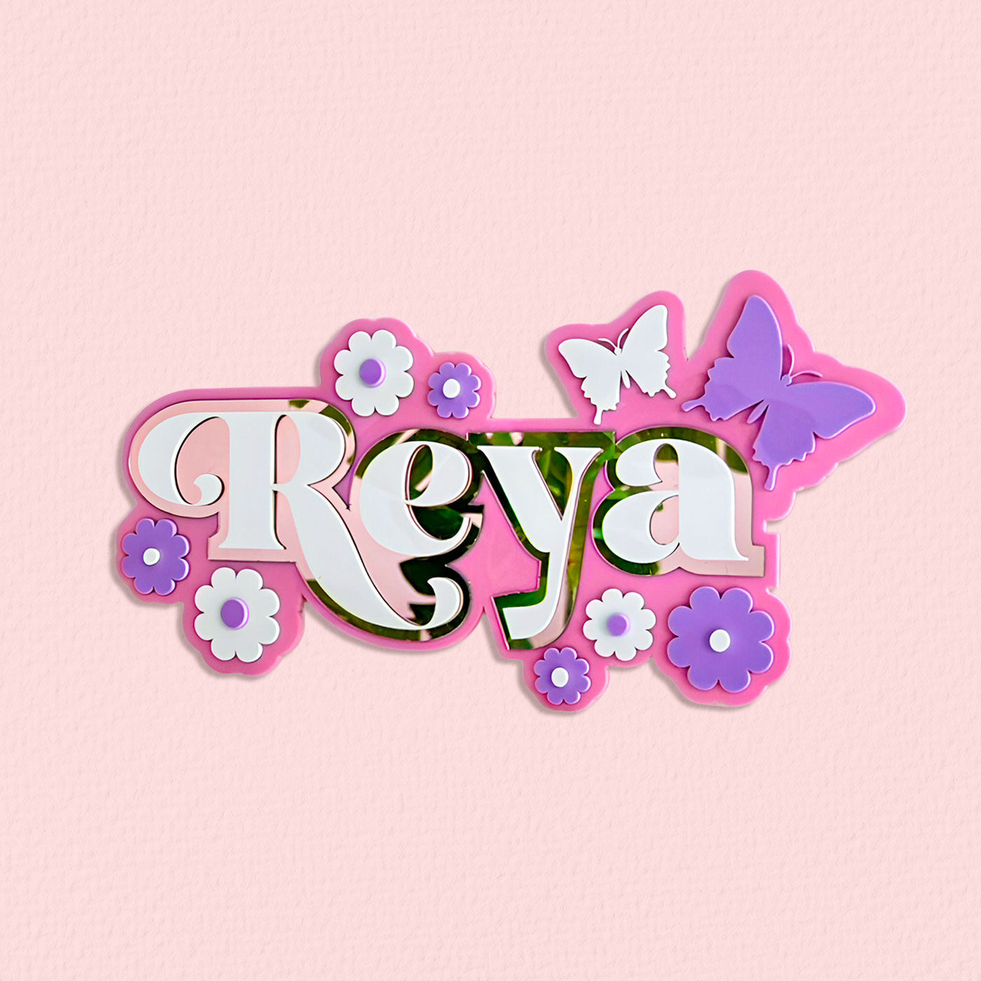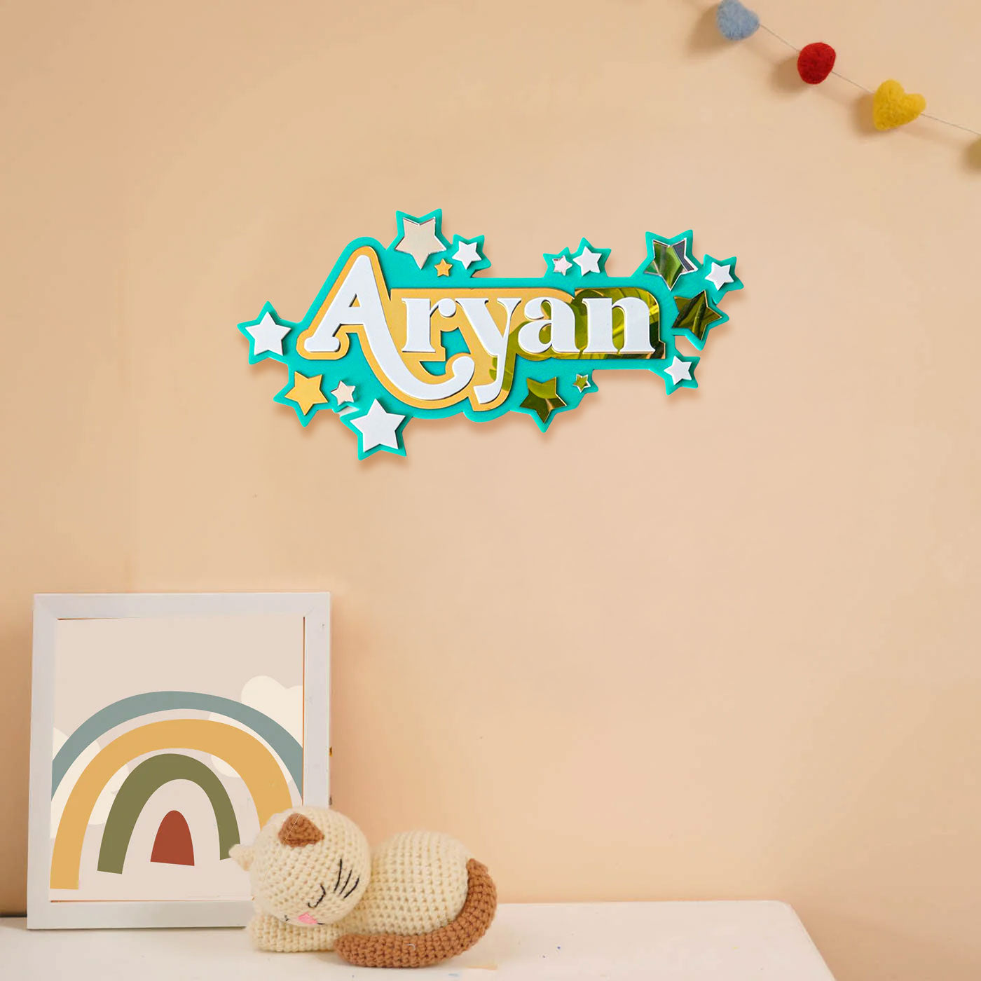 3 Layer Name Plaque- Silver White with Multiple Motif