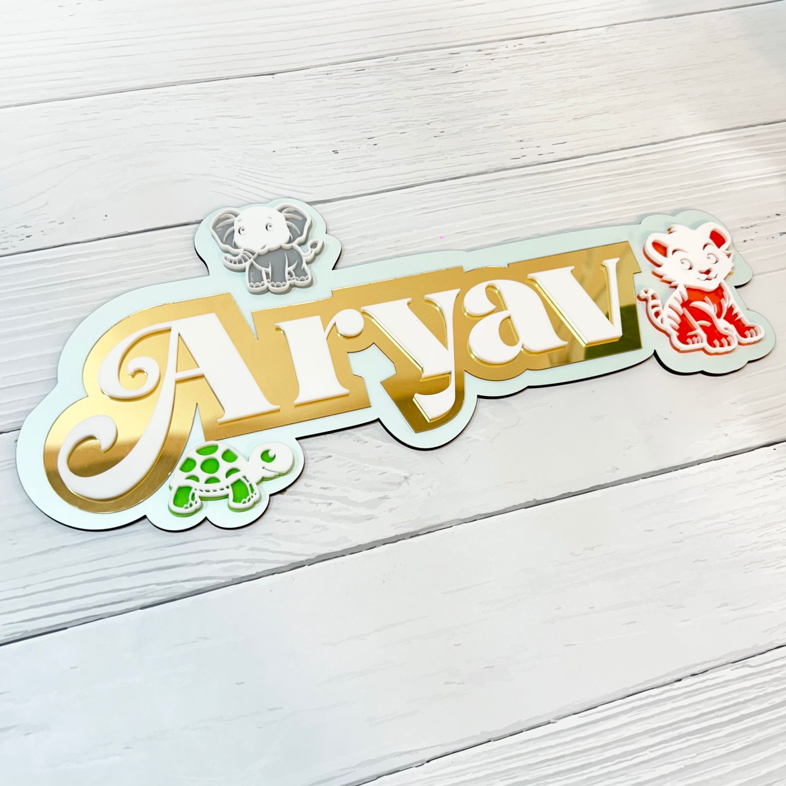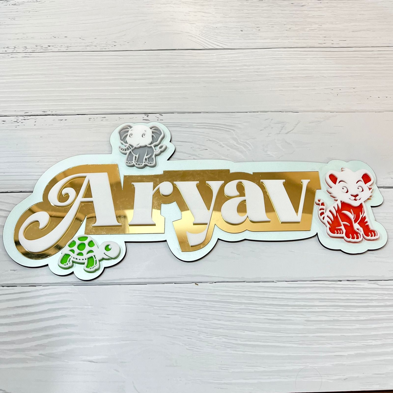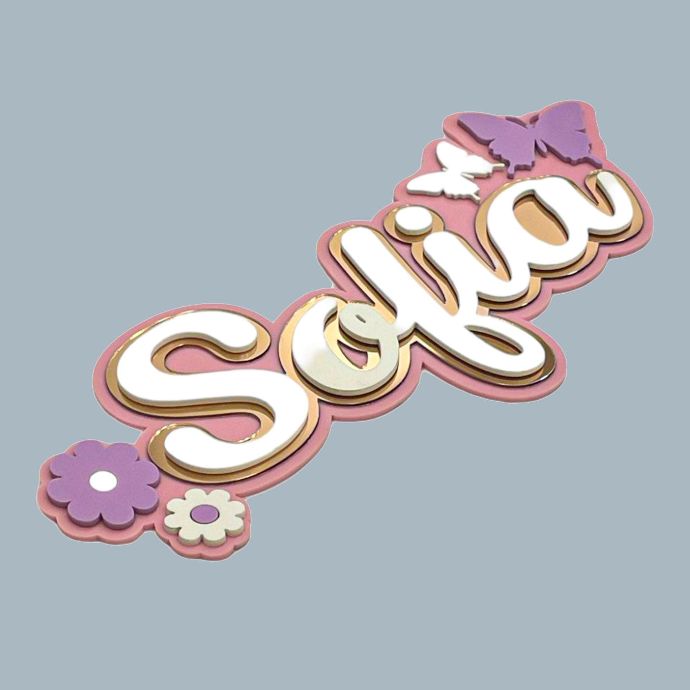 3 Layer Name Plaque- Gold White with Multiple Motif