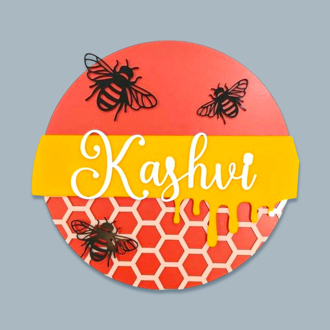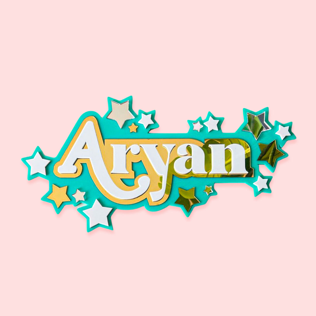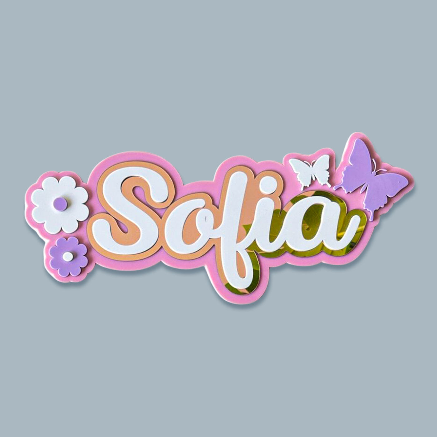 3 Layer Name Plaque- Gold White with Multiple Motif