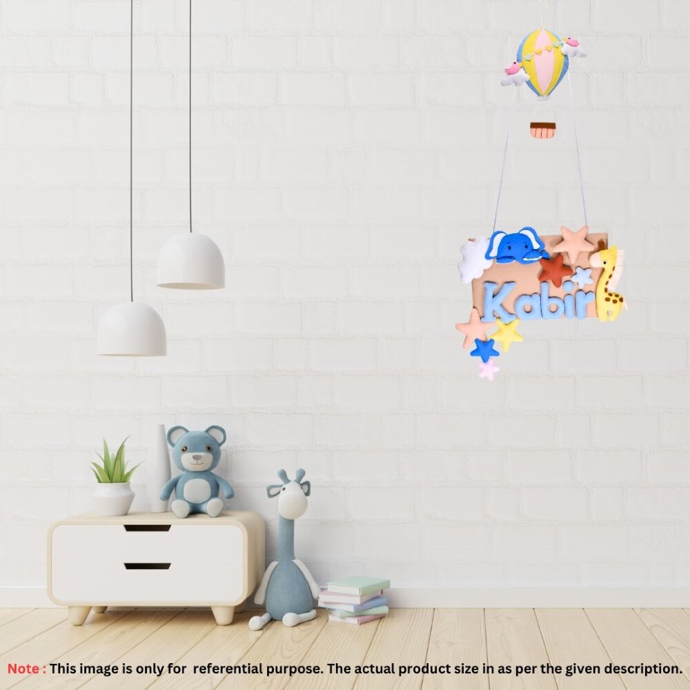 Introducing our safari-inspired name plate for kids. Crafted on quality wood, this name plate showcases your child's name in playful lettering, adorned with delightful felt safari animals and a hot air balloon. Ideal for nurseries and playrooms, this personalized touch brings the wild wonders of the savannah into your child's space.