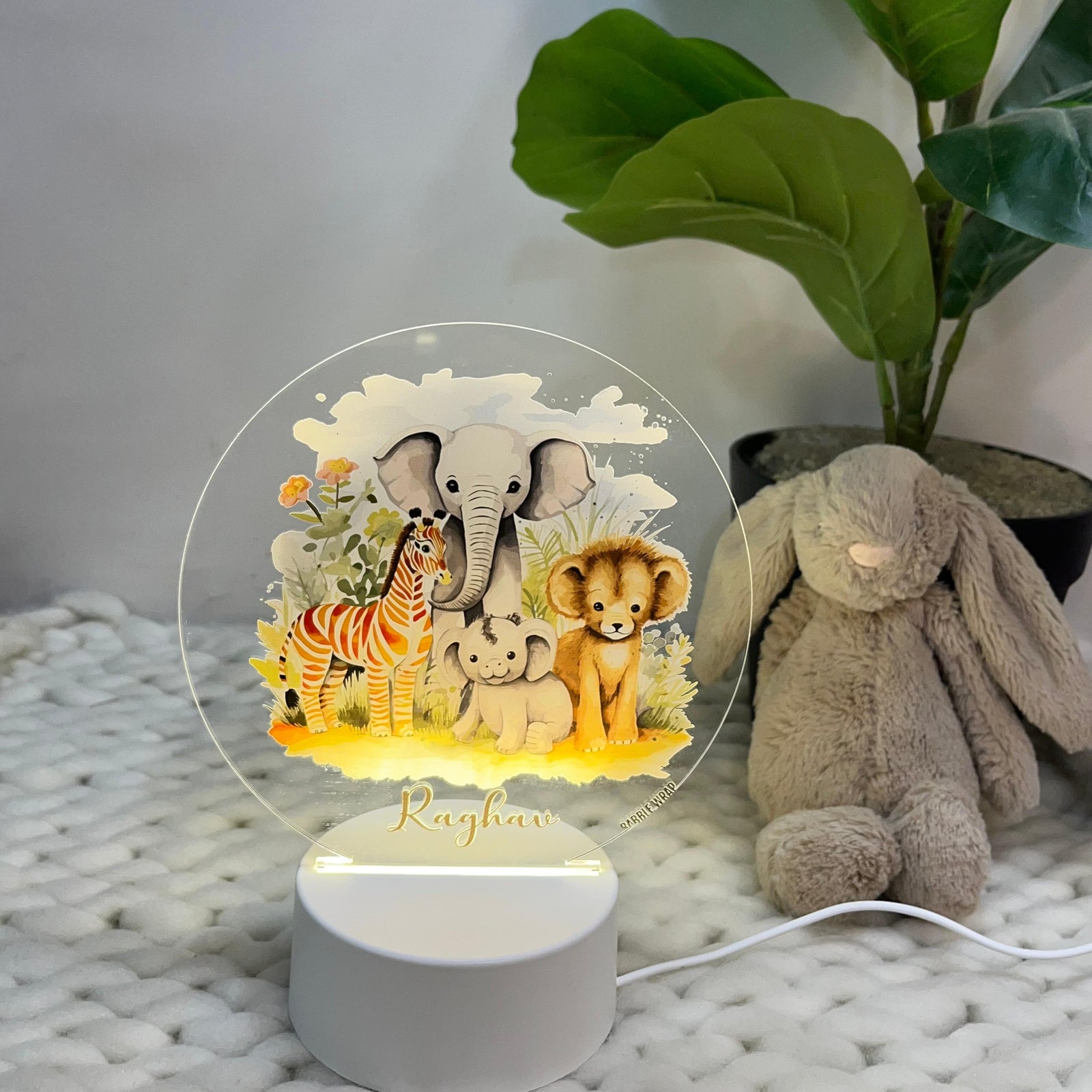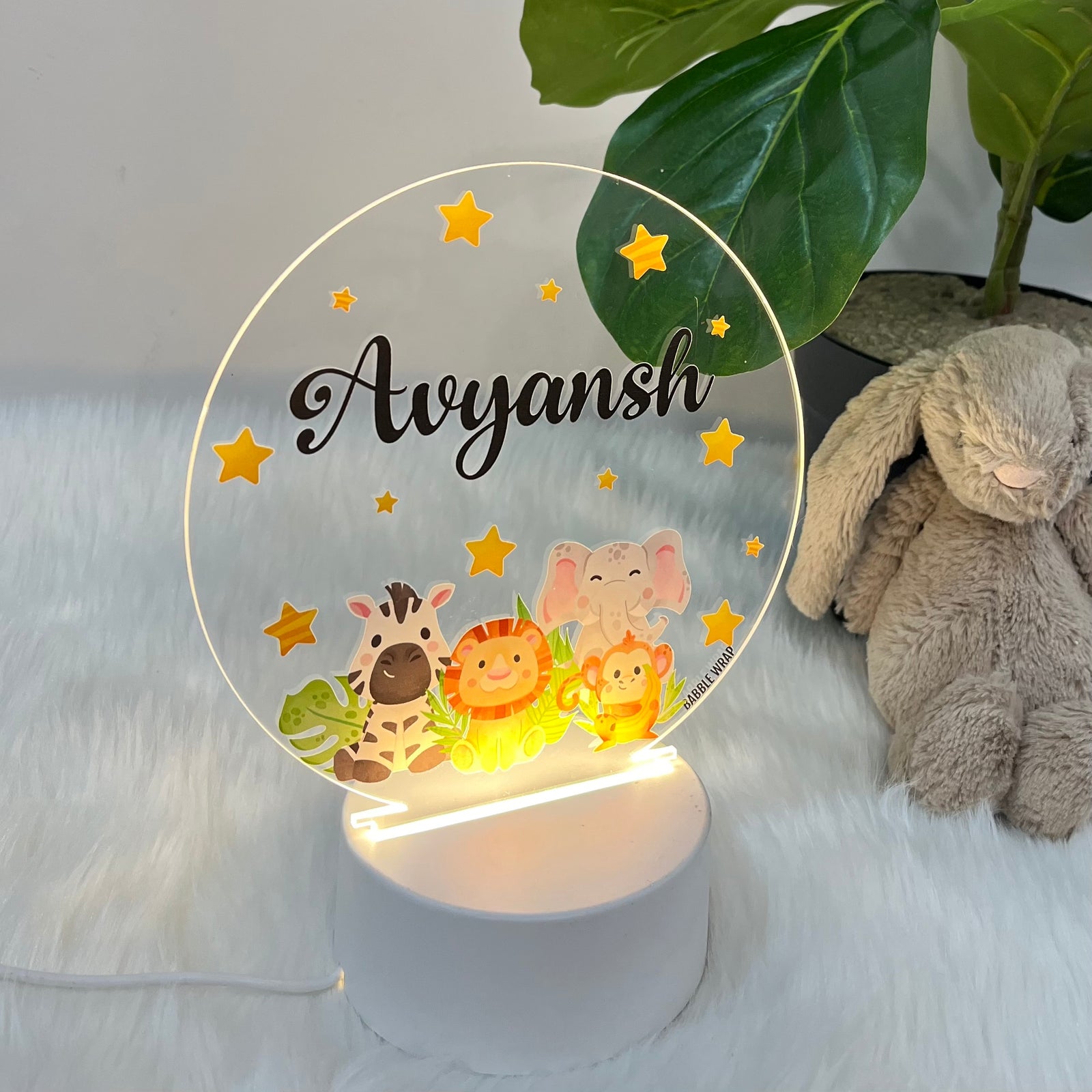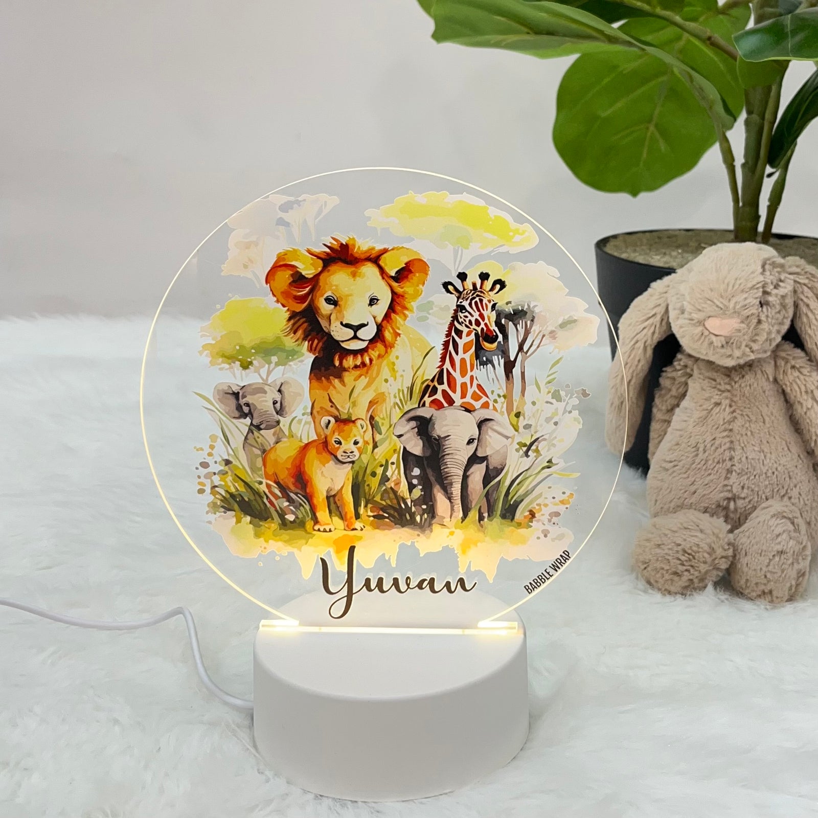 Acrylic LED Night Lamp- Woodland Animals (Round)