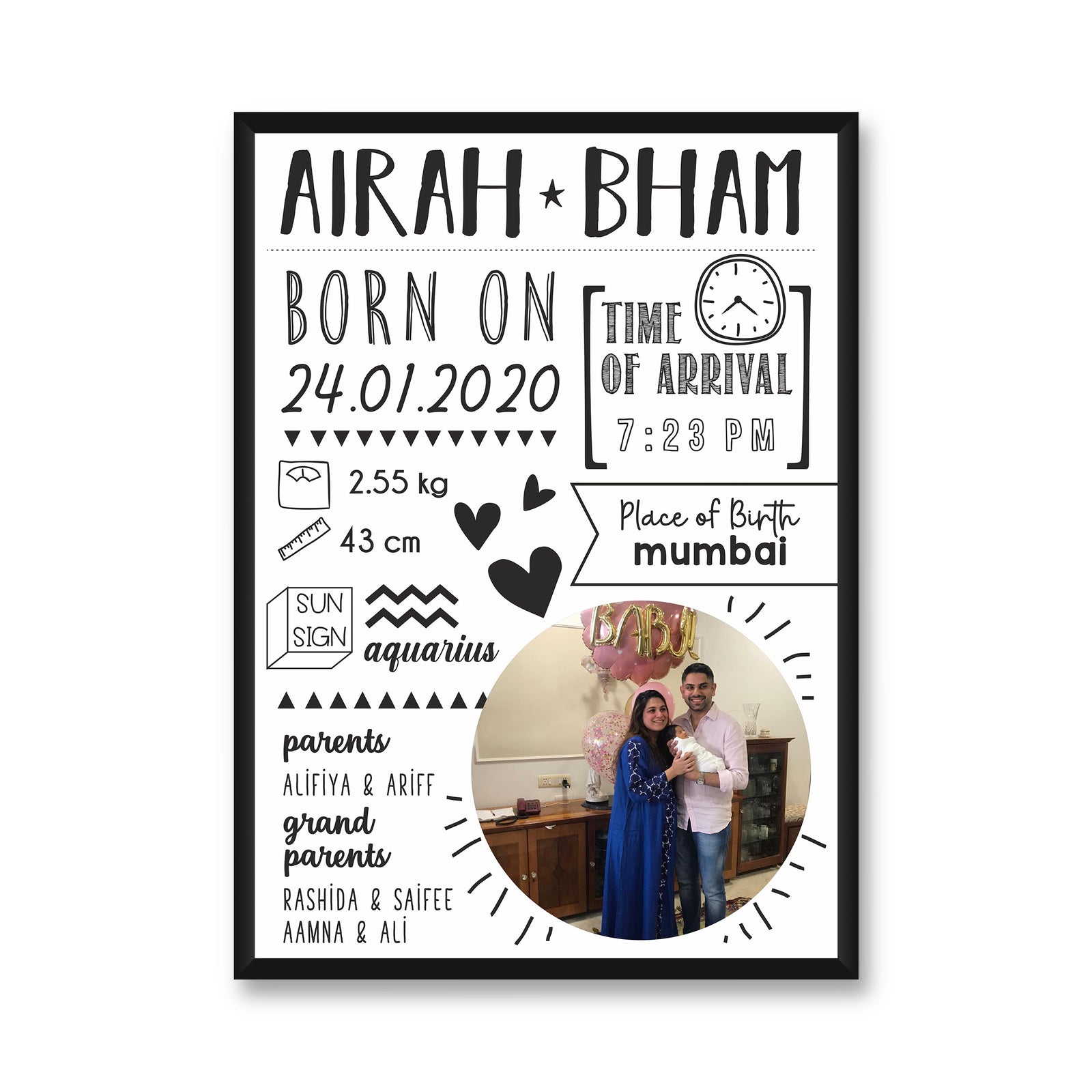 Birth Statistics Frame - Hot Air Balloon Lavender