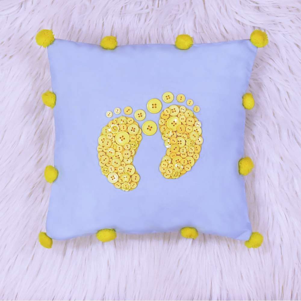 Happy Feet Button Cushion - Yellow Buttons On Light Blue Base