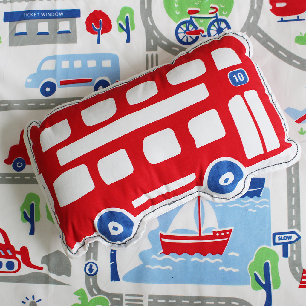 Busy Street Big Bus Shape Cushion for Boys & Girls (Can be Personalised)