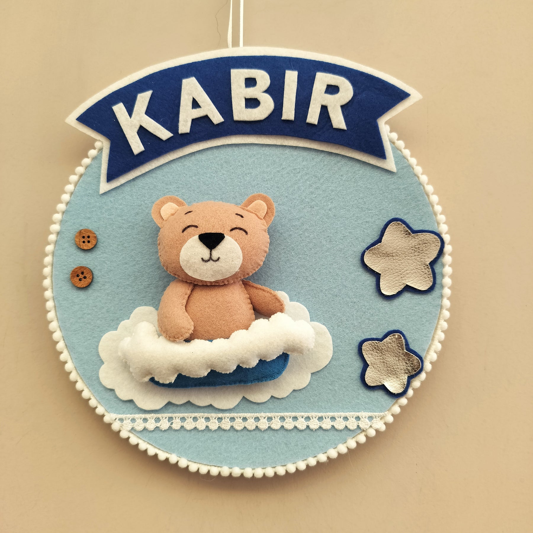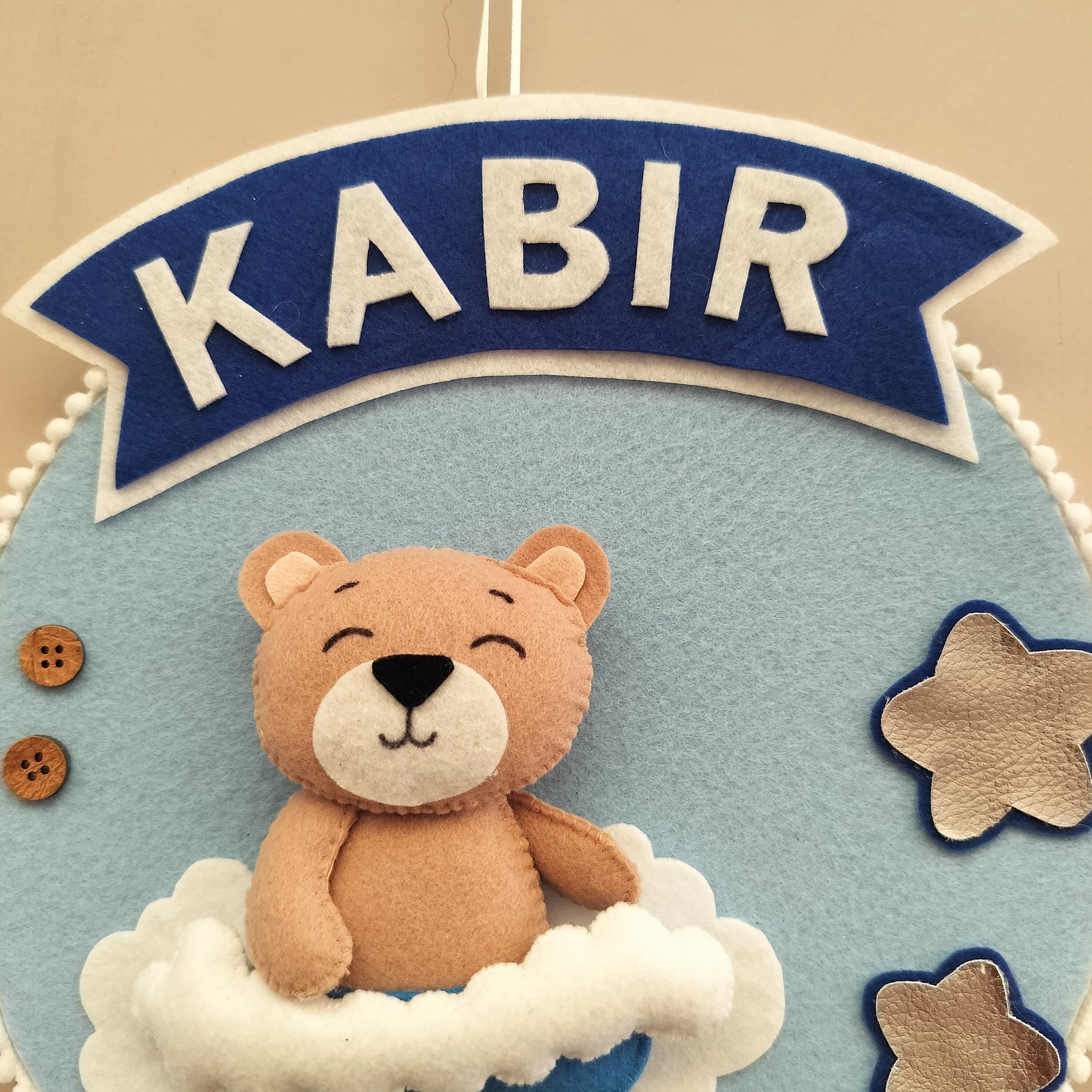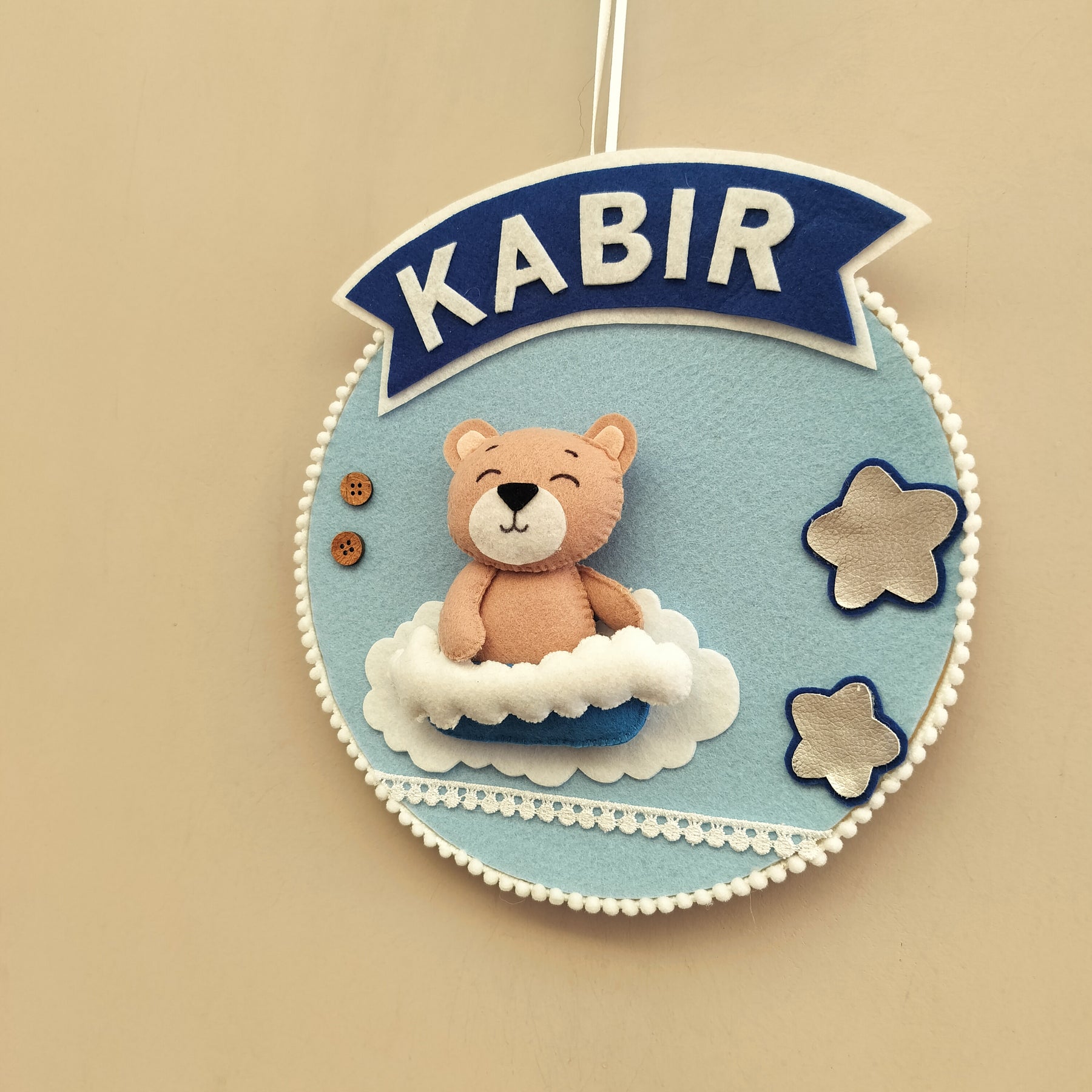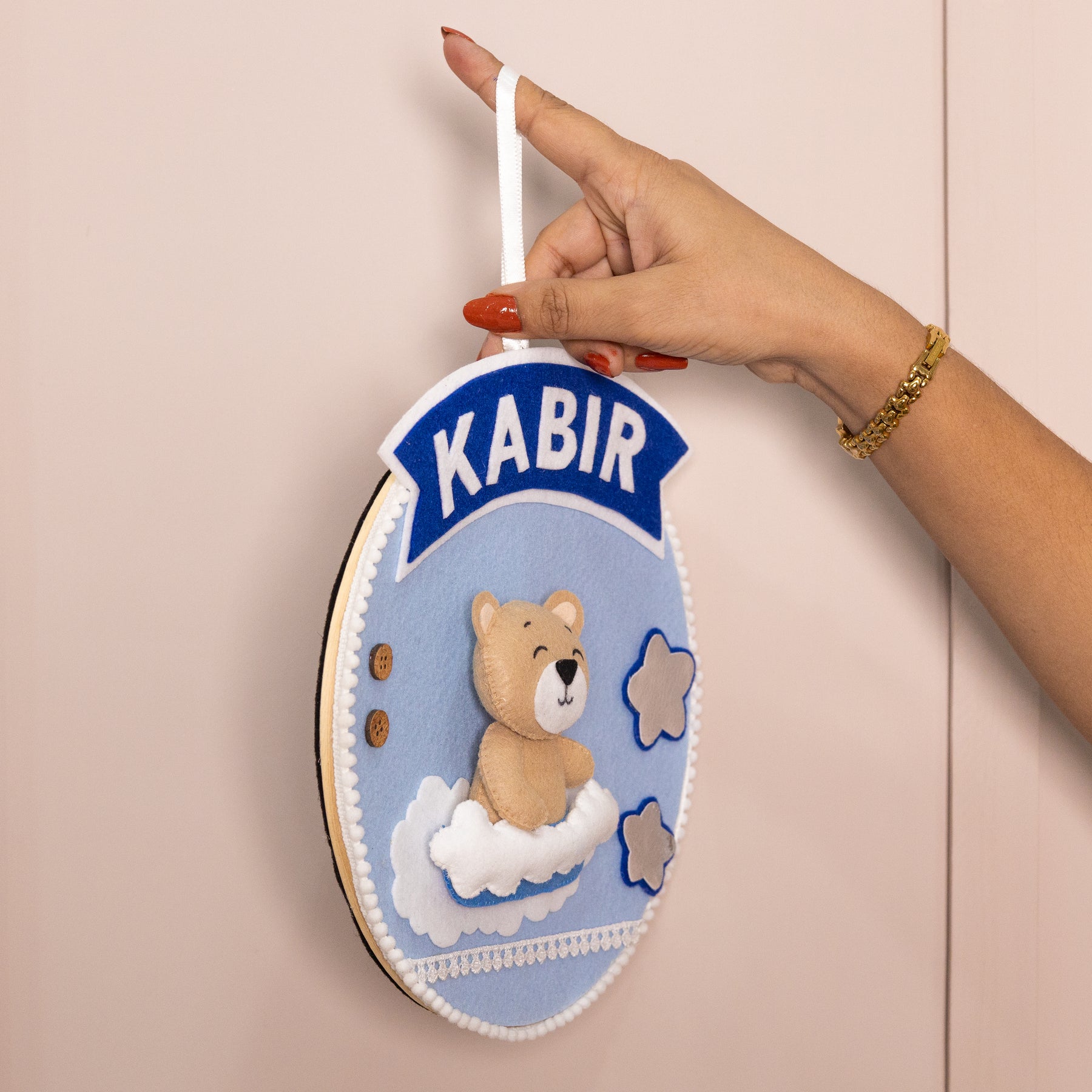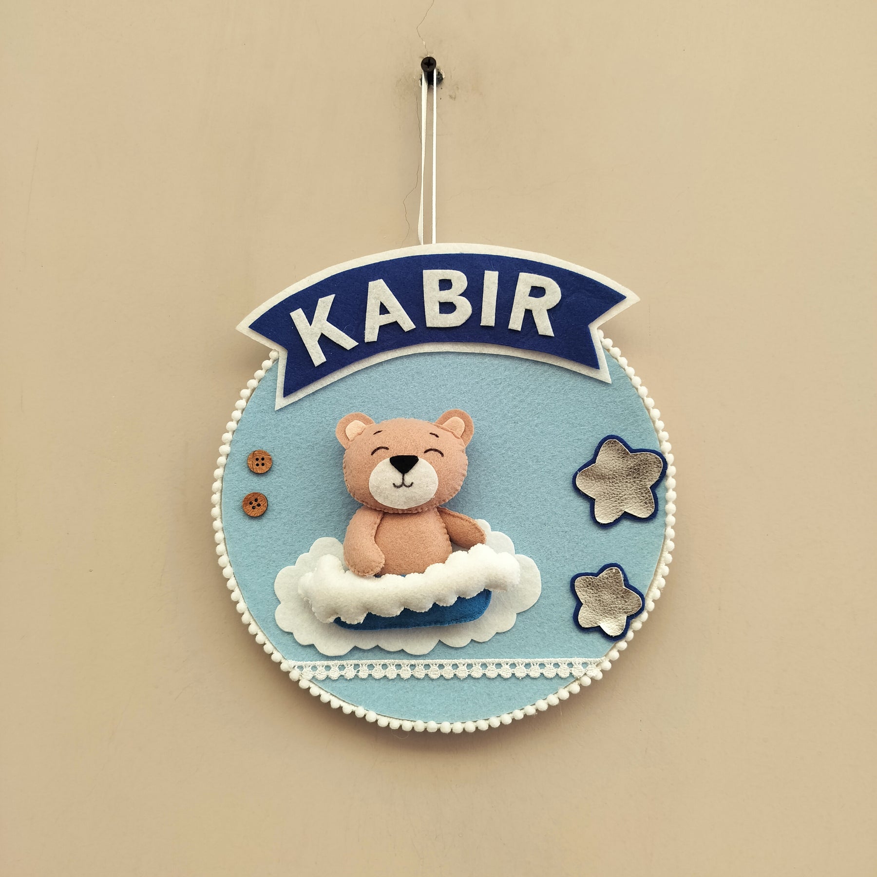 Make your child’s space extra special with this personalized felt wall décor featuring an adorable teddy sitting on a fluffy cloud. Crafted with soft, high-quality felt and attention to detail, this charming piece can be customized with your child’s name, making it a unique and thoughtful addition to any nursery or playroom. Its gentle color palette and cute design make it a perfect gift for baby showers, Rakhi, or birthdays. Handmade with love and eco-friendly materials, this wall hanging adds a warm, whimsical touch to any child’s room while creating a lasting keepsake to treasure for years to come.
