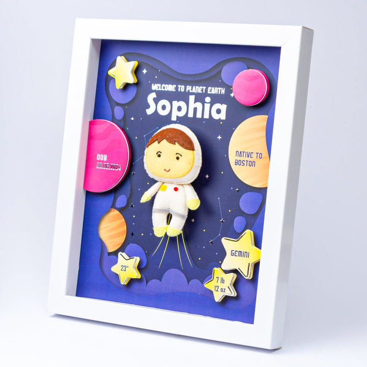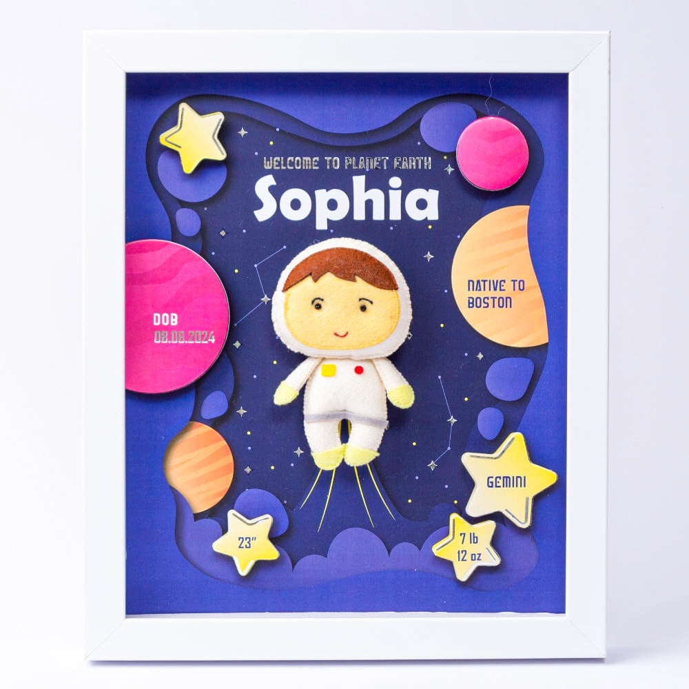 A 3D Birth Statistics Shadow Box Frame is not just a decorative piece but a cherished heirloom that captures the joy and significance of a child's birth. It serves as a constant reminder of that special day and is often displayed with pride in a family's home, making it a conversation piece and a heartwarming focal point.