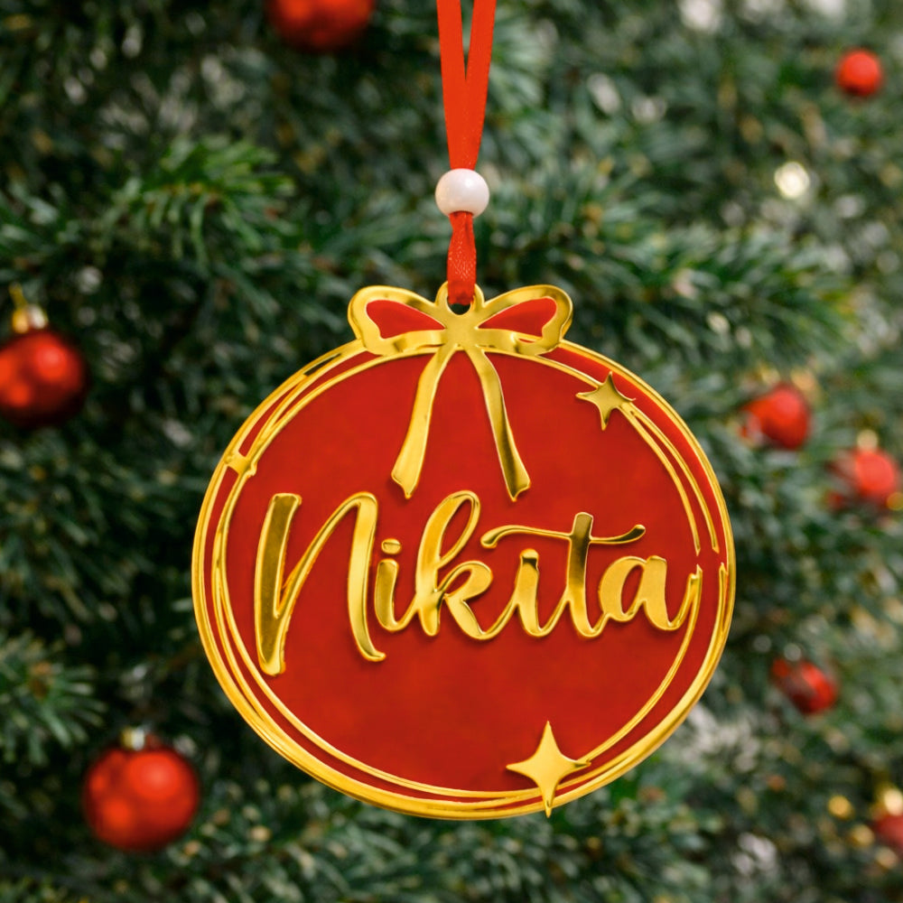 Babble Wrap Golden Bow Name Ornament