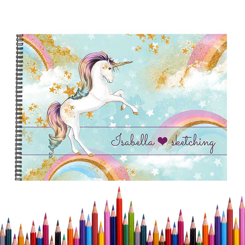 Sketch Books With Personalized Crayons - Magical Unicorn