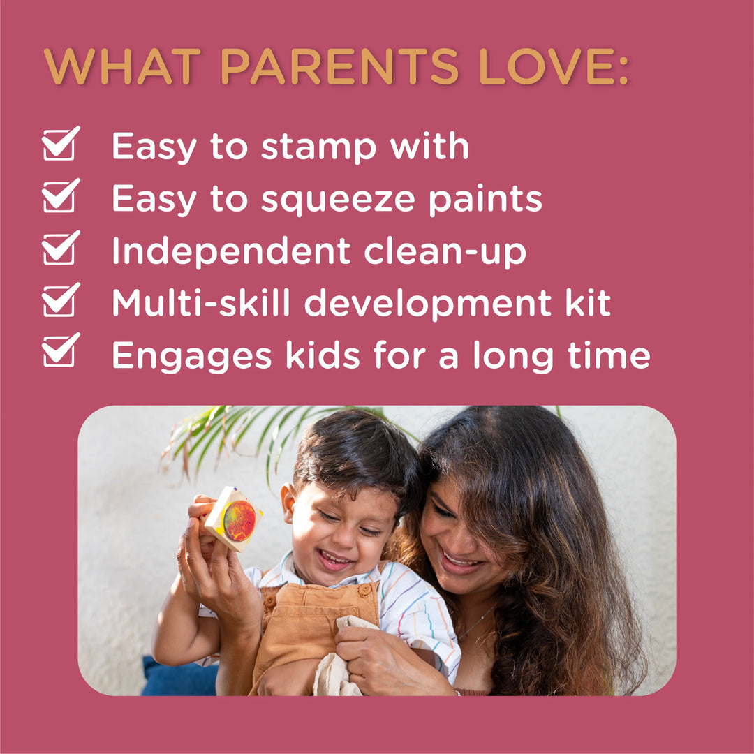 ✔️Experience and Explore the beautiful textures created by the Wooden Stamps and Dabble Finger Paints
