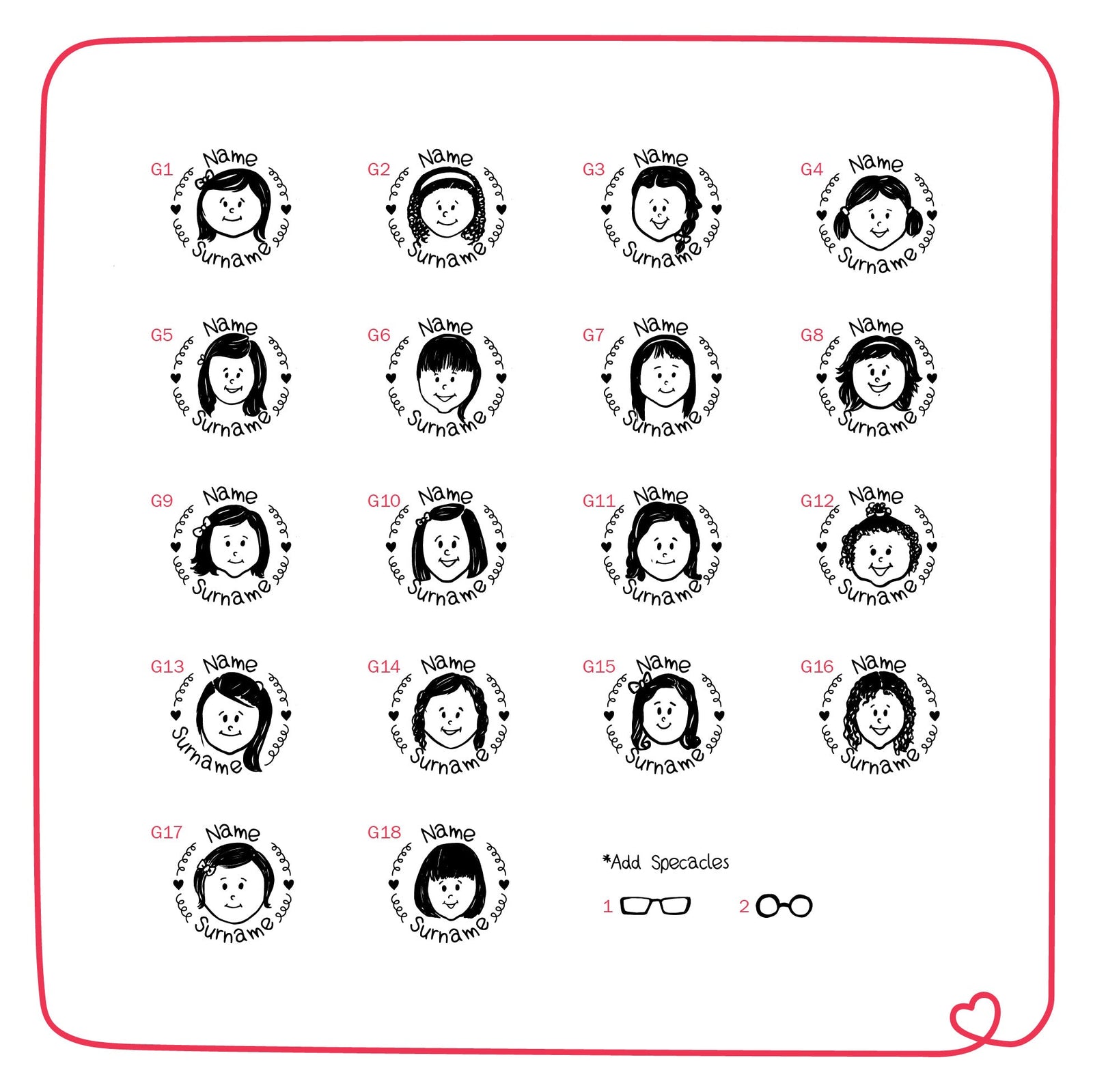 Personalised Single Face Rubber Stamp with Wooden Mount - Boys & Girls (Ready Face Templates)