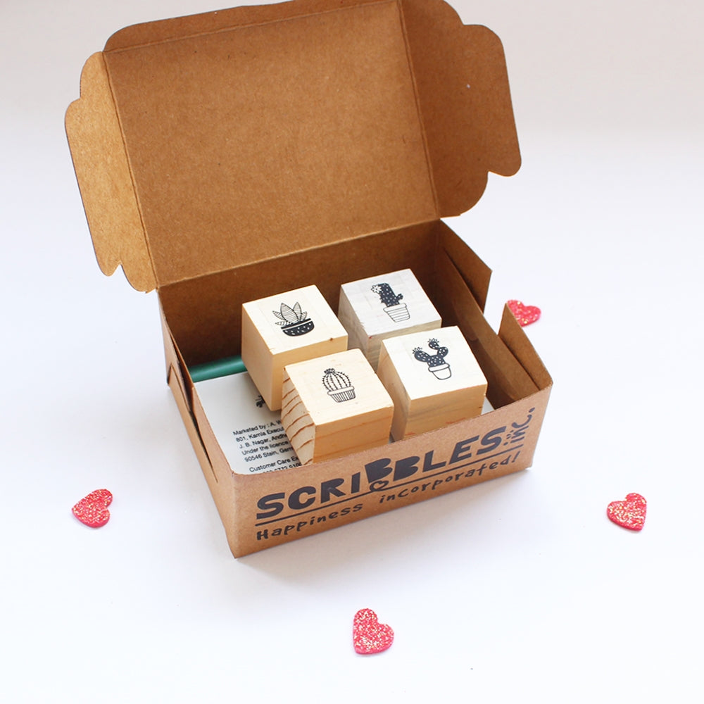 Mini Rubber stamps on a Wooden Mount - Set of 4 (4 Cacti)