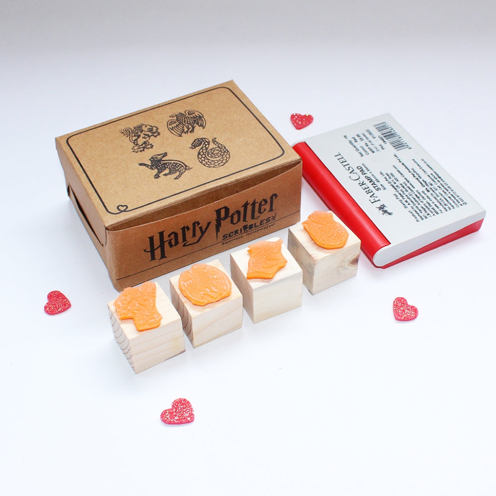 Official Harry Potter Mini Rubber Stamps on a Wooden Mount - Set of 4 (4 Houses)