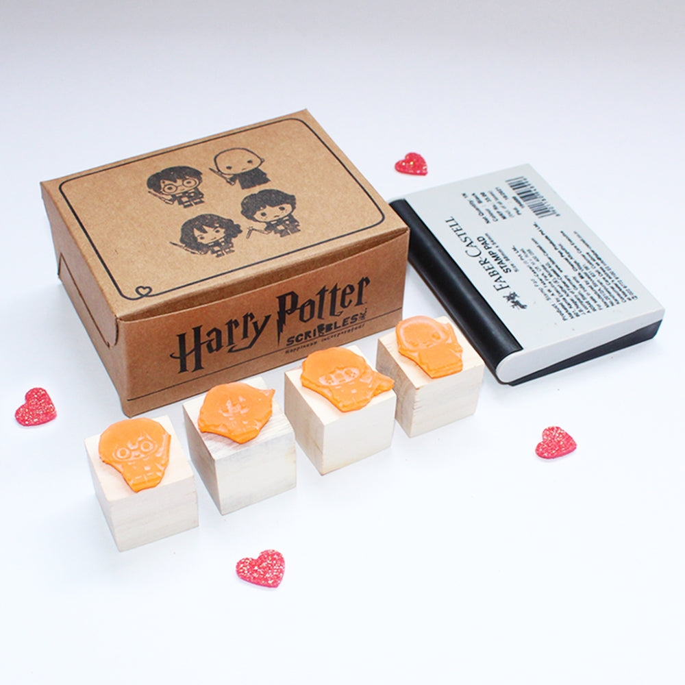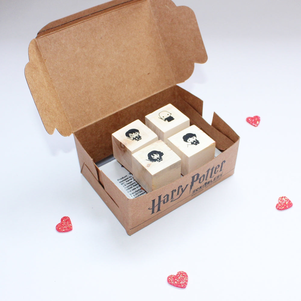 Official Harry Potter Mini Rubber Stamps on a Wooden Mount - Set of 4 (Harry, Ron, Herione, Voldemort)