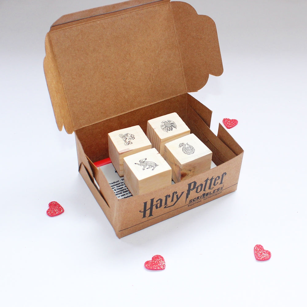Official Harry Potter Mini Rubber Stamps on a Wooden Mount - Set of 4 (4 Houses)