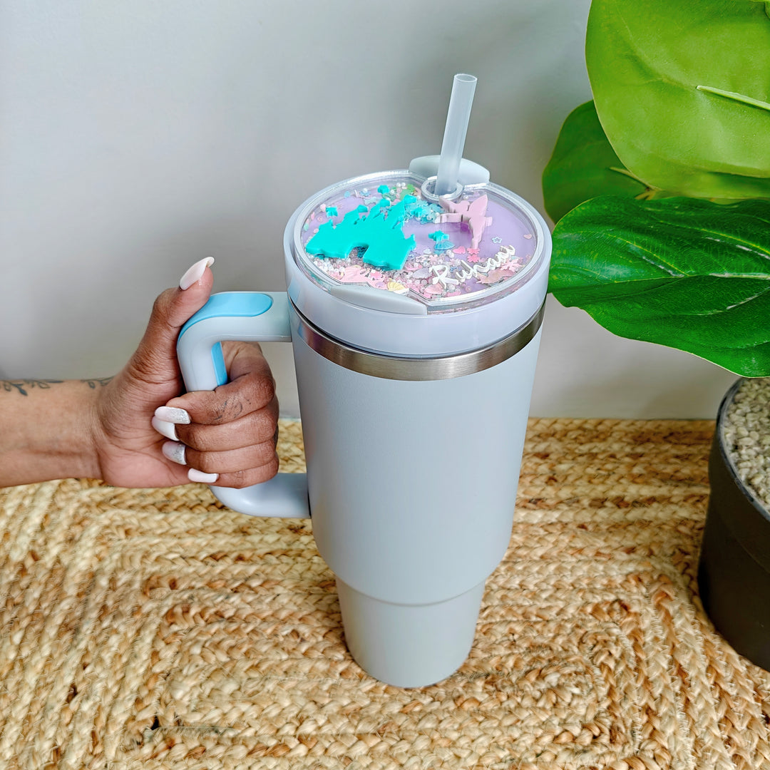 Bring a touch of magic to your tumbler with the Castle Dreams shaker – a dreamy, pastel topper featuring a whimsical castle, a flying fairy, and floating starry elements. Finished with your name in elegant script, this shaker turns your authentic tumbler into a personalised fairytale.
