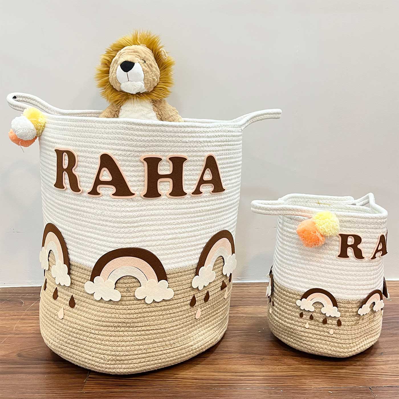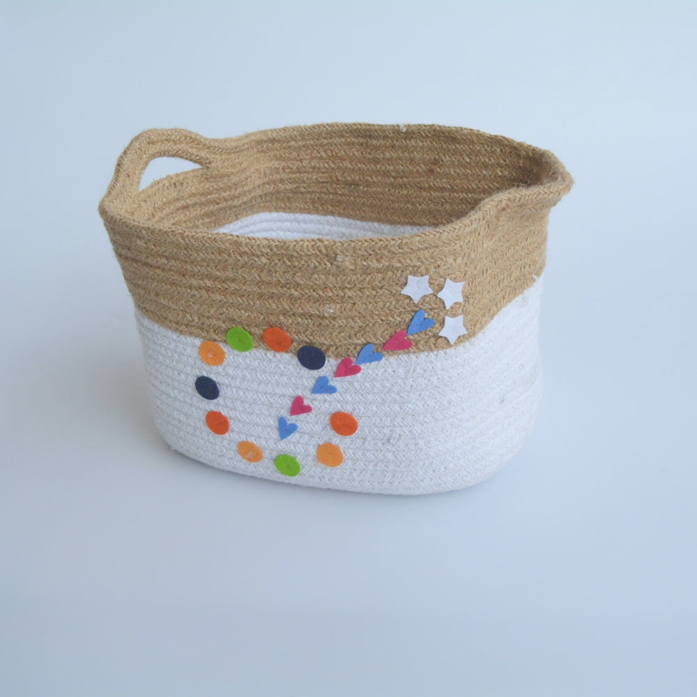 Babble Wrap Jute Cotton Storage Basket - Rainbow Raindrops