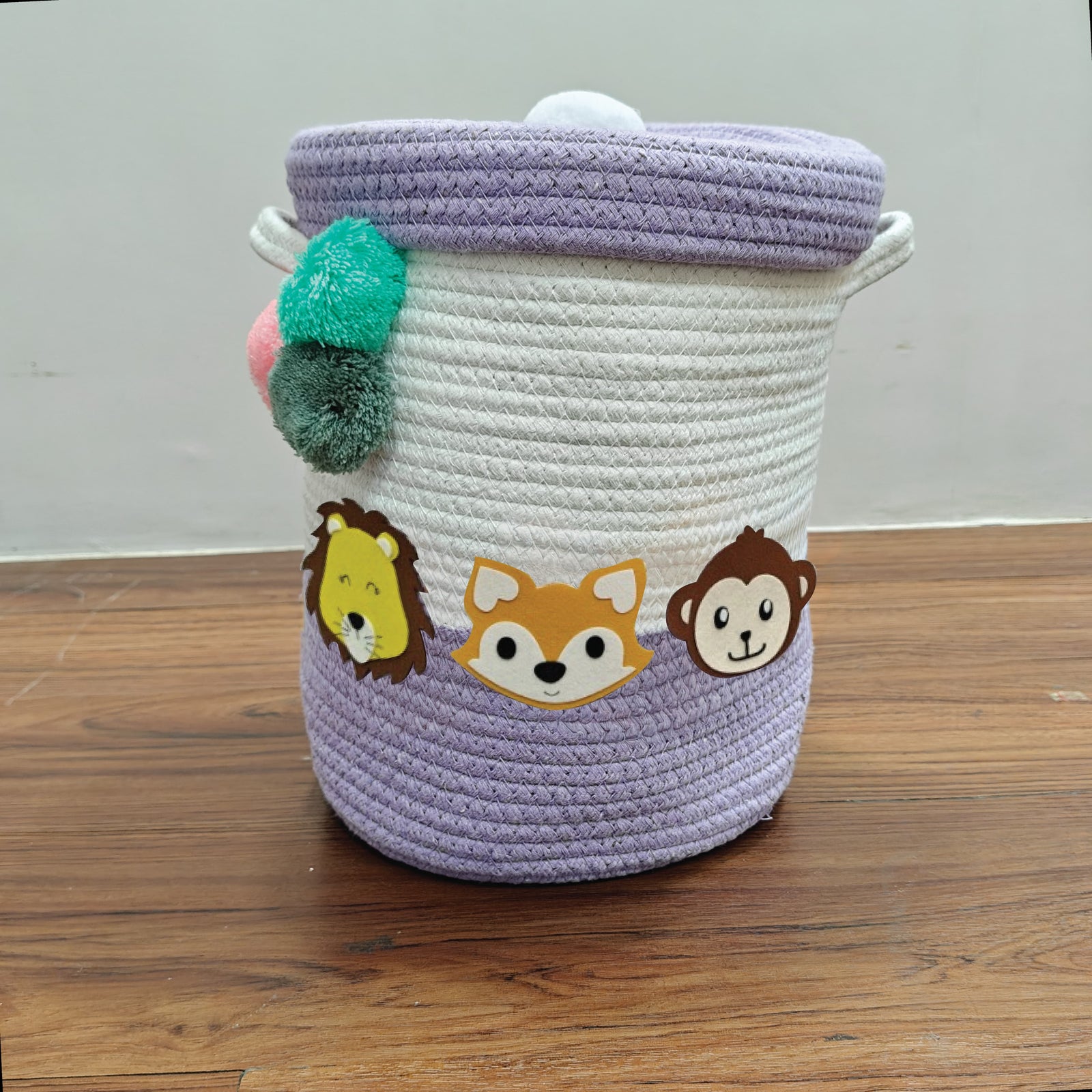 Babble Wrap Jute Cotton Storage Basket with Lid-Purple Paw