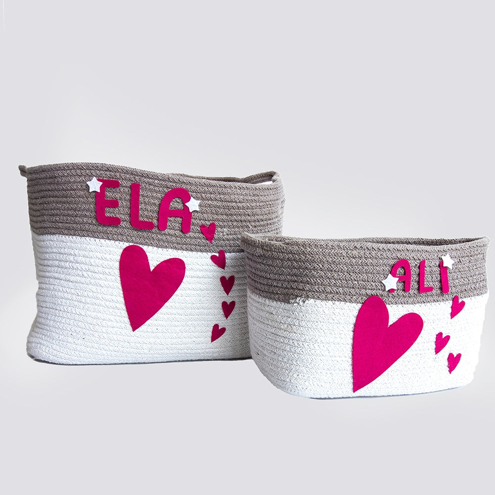 Doodle Hearts - Cotton Rope Baskets Pink (Individual/Set Of 2)