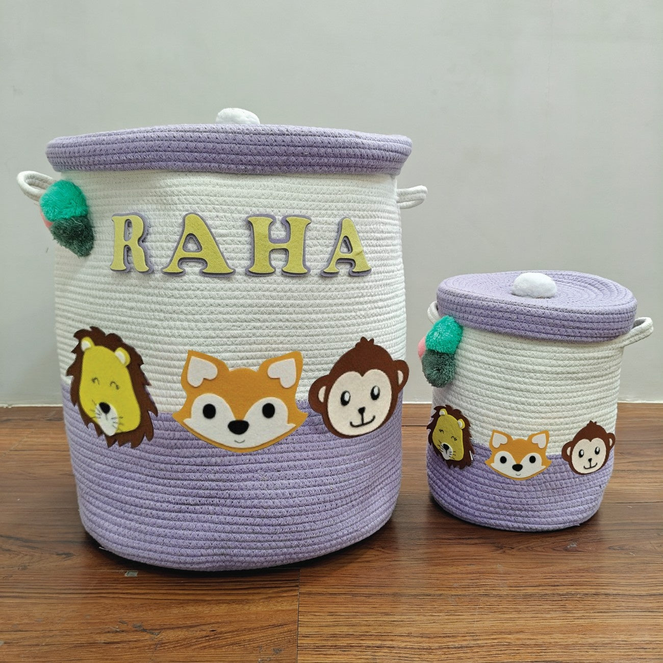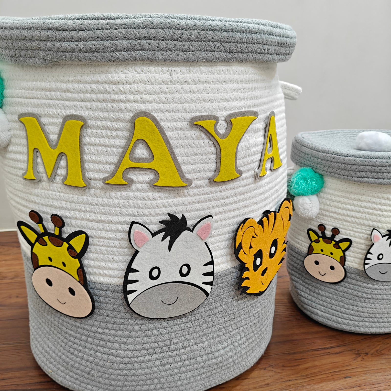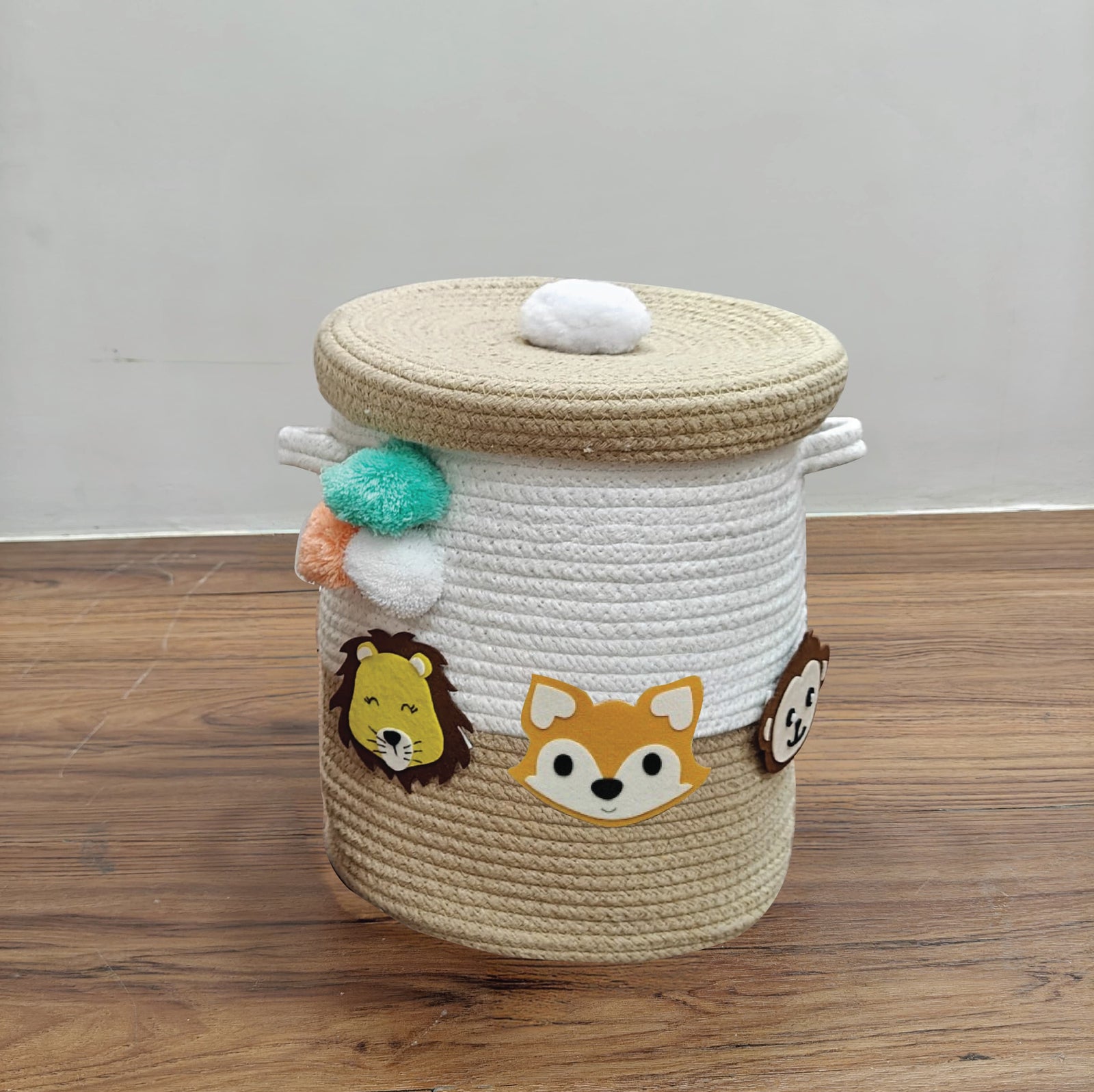 Babble Wrap Jute Cotton Storage Basket with Lid - Safari Snuggles