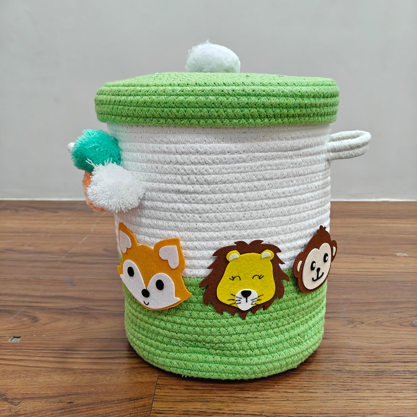 Babble Wrap Jute Cotton Storage Basket with Lid- Jungle Jive