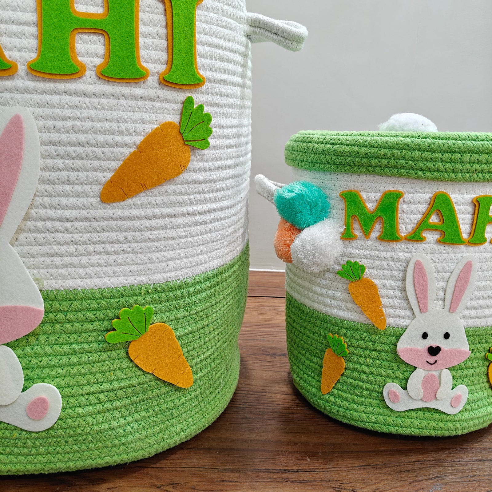 Babble Wrap Jute Cotton Storage Basket with Lid -Bunny Bounty