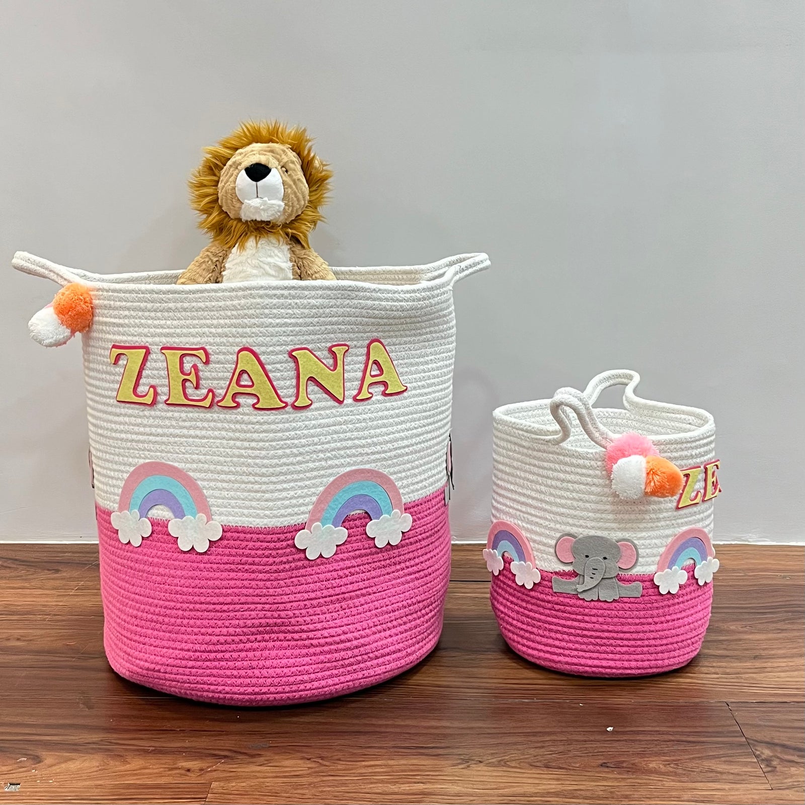 Babble Wrap Jute Cotton Storage Basket - Elephant’s Magical Rainbow