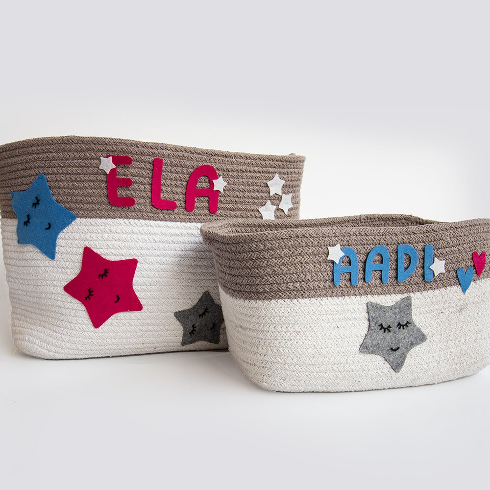 Twinkly Stars - Cotton Rope Baskets (Individual/Set Of 2)