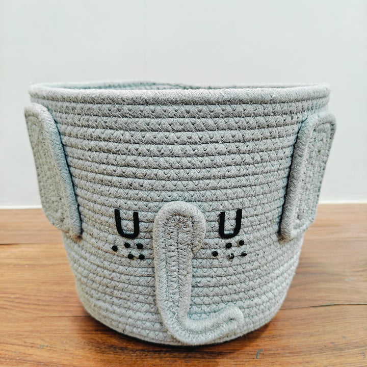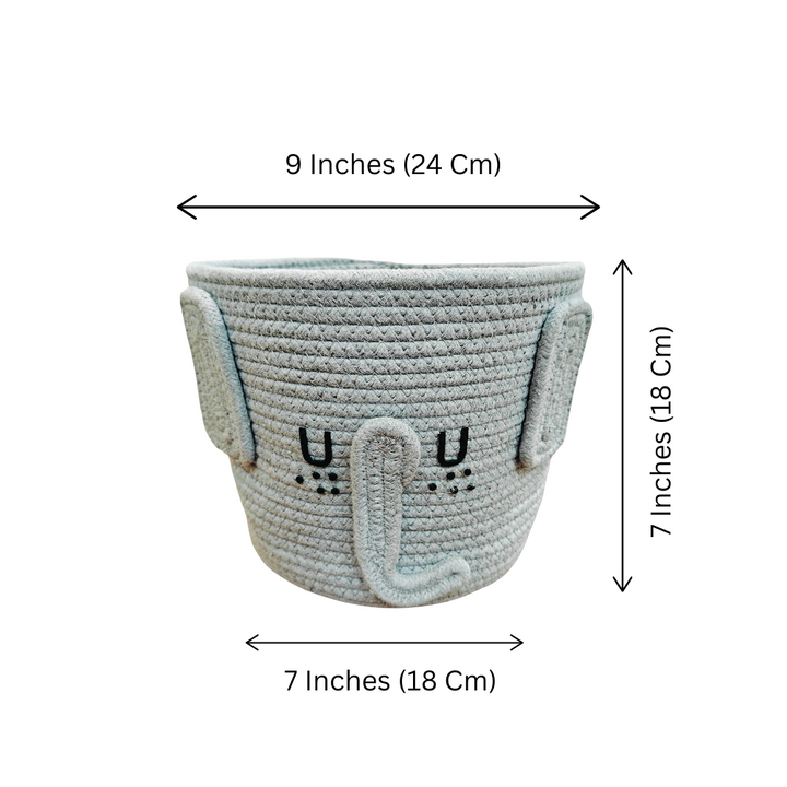 Our Basket crafted from durable jute and soft cotton, it offers both sturdiness and comfort. Perfect for carrying books, toys, or treasures, this basket is as functional as it is enchanting. Elevate your child's storage with a sprinkle of magic and practicality. This Elephant’s Haven Basket theme basket in bright hues serves as a dual purpose of both kid's room decor as well as storage made easy.