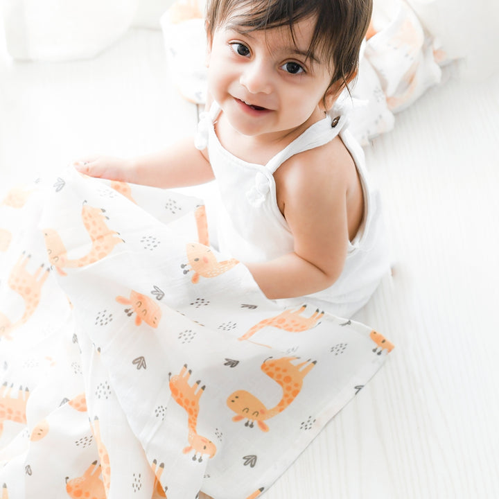 Wrap your baby in a soothing hug with the Yellow Doodle Organic Muslin Swaddles. Made of oh-so-soft premium muslin, these super soft swaddles will always make your baby feel snug and secure. Our beautiful organic swaddles are made out of 100% cotton muslin, making them irresistibly soft against your baby's skin. A naturally light fabric, it allows for maximum air flow which is perfect for swaddling. SIZE & MAKE-Single layer of 100% Organic Cotton Muslin, Perfectly sized with cheerful design, 105 x 105 cm. Hypoallergenic, environment- friendly AZO free dyes. Handmade with care in India. CARE- Our incredibly soft muslin swaddles actually get softer as you wash them! Gentle cycle, use mild detergents, no bleach, tumble dry low.