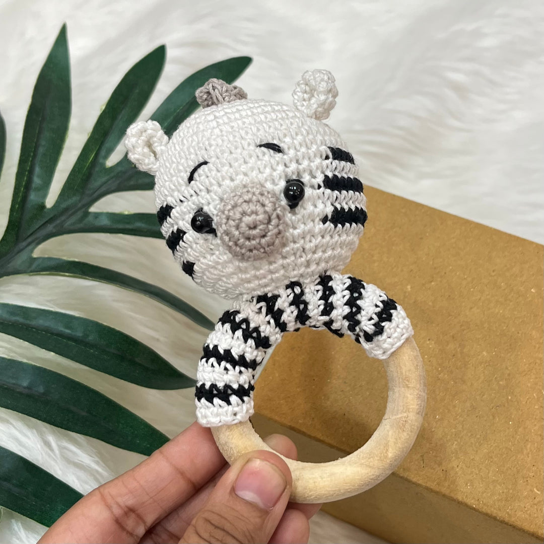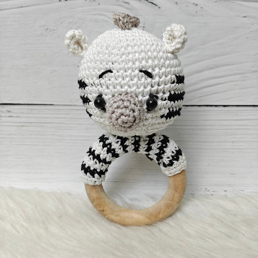 Our crochet rattle and teether is the perfect toy for your baby’s delicate needs. The organic cotton yarn provides a soft texture, while the wooden teether offers safe, natural relief for teething. Easy to hold, gentle to the touch, and designed with love for your little one. It's made for little hands to grip and explore.