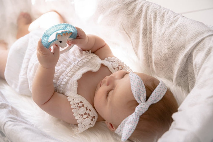 This fresh Sophie la girafe teething ring to refrigerate soothes and stimulates baby's inflamed gums.
