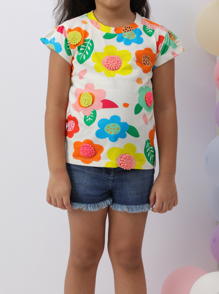 Floral Pom Pom Top