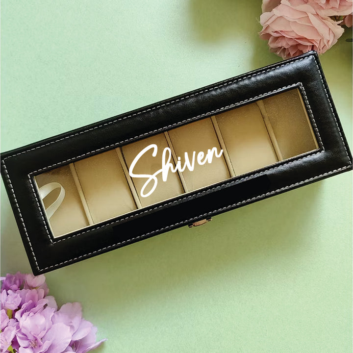Store your timepieces collection in style with our sleek personalized watch box black with 6-slots, crafted from high-quality faux leather! This premium watch storage box can be personalized with your name, initials, monogram or special message.