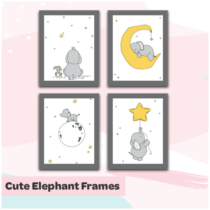 Cute Elephant Framed Wall Art (Set of 4)