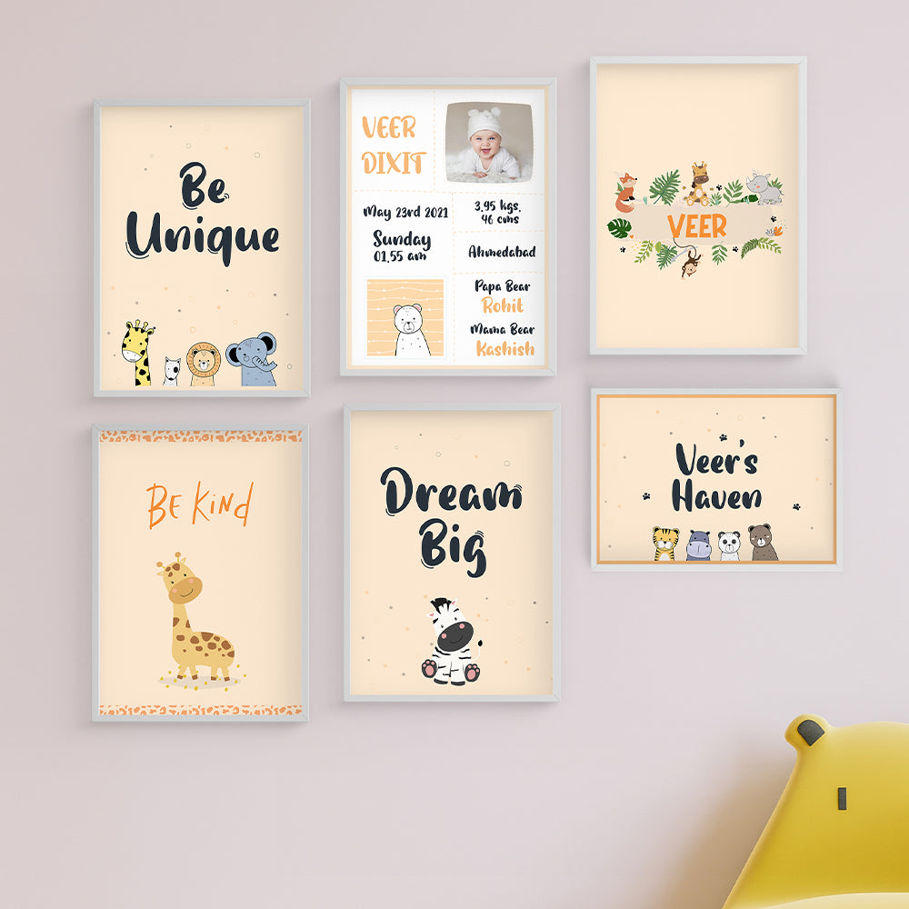 Nursery Decor Animal Framed Wall Art (Set of 7)
