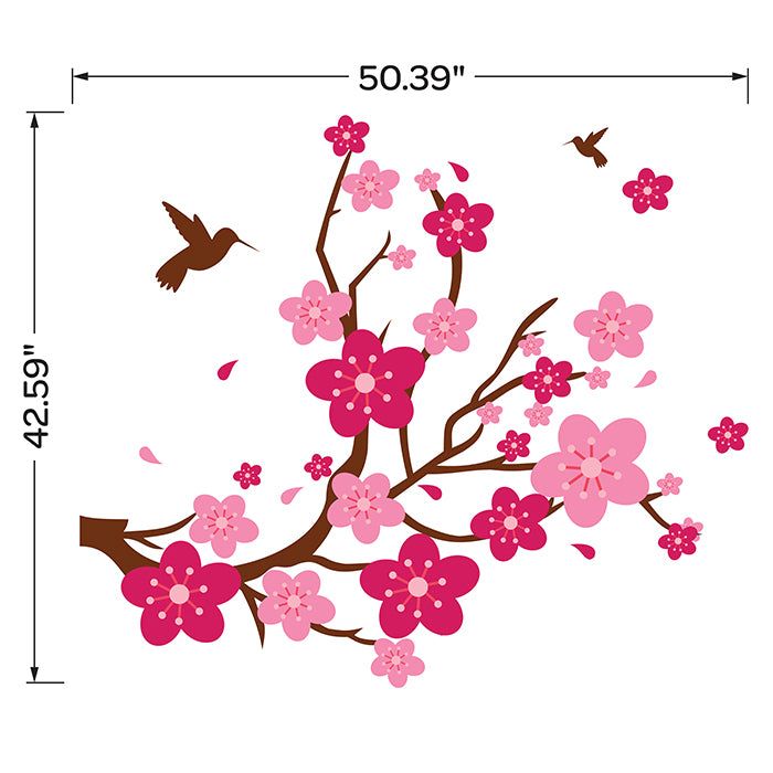 Each individual piece of wall sticker is a three-cut sticker that comes in a sheet in the approximate size 30"" x 18"". The approximate size of the individual pieces is - Cherry Blossom Branch: 50.39"" X 42.59""