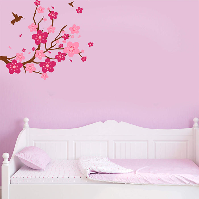 "Cherry blossom branch wall stickers are a great way to add some color and personality to your kid's room. The branches are both realistic and playful, with a variety of shapes and sizes that will appeal to both boys and girls. They're also relatively easy to install, so you don't need any special tools or skills to get the job done right—just follow the instructions on the package.