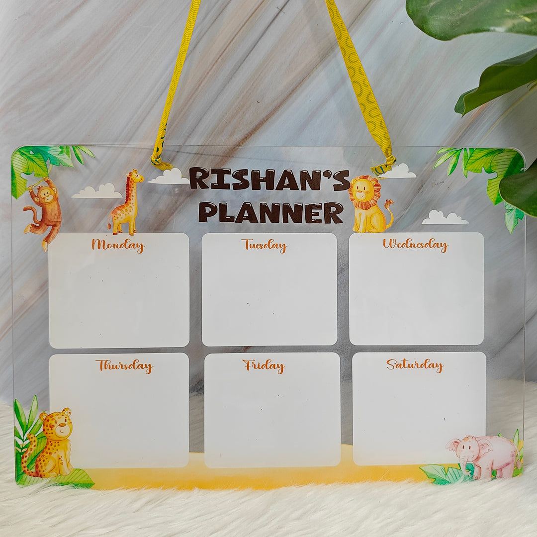 Add a splash of fun and organisation to your child’s room with our custom acrylic planners!  Designed to keep little ones excited about their week ahead, these planners are perfect for writing tasks, routines, or reminders – all while adding charm to their space.
