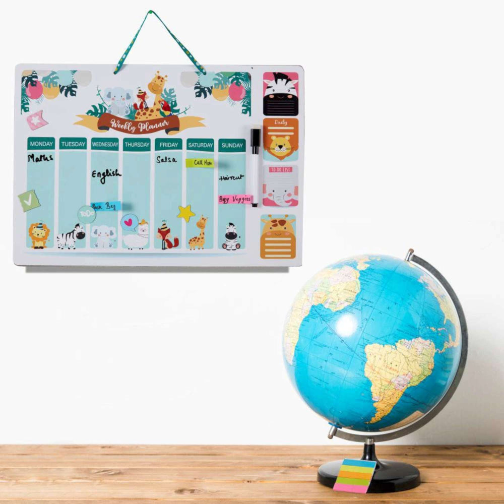 Size: 16" (40.6 cm) × 11" (27.9 cm) | Comes with a dry erase pen , 5 shaped magnets and is a rewritable planner.