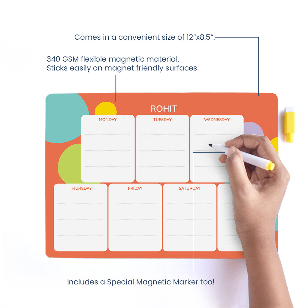 No more struggling with meal plans & fussy eaters. Create excitement in your kids by personalizing a meal planner for them! Involve them in the process with ease & create balanced weekly meals with this cutely designed personalized Meal Planner. P.S: Special Magnetic Marker included for FREE!