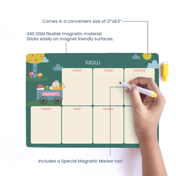 No more struggling with meal plans & fussy eaters. Create excitement in your kids by personalizing a meal planner for them! Involve them in the process with ease & create balanced weekly meals with this cutely designed personalized Meal Planner. P.S: Special Magnetic Marker included for FREE!