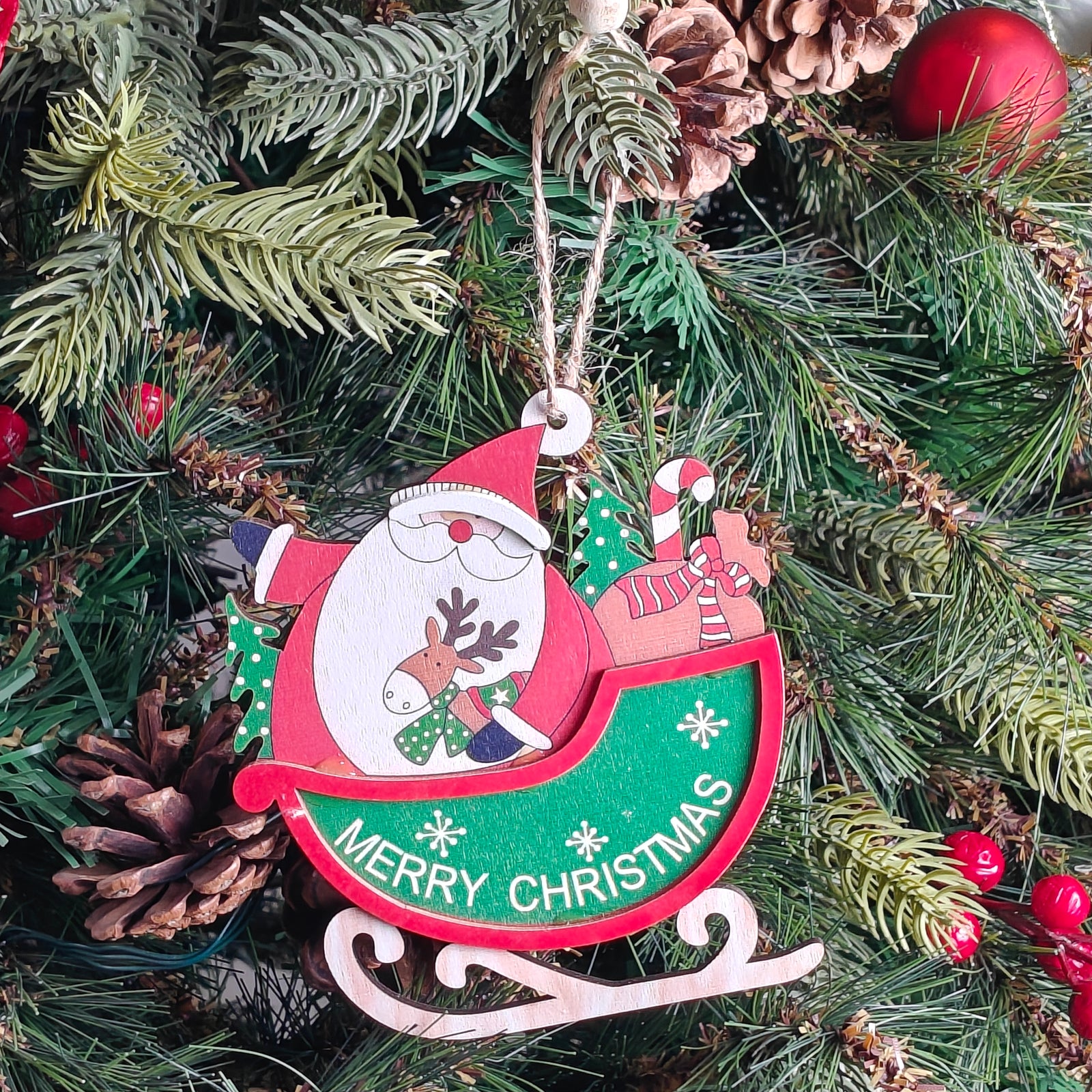 Babble Wrap Wooden Sleigh Ornament - Santa