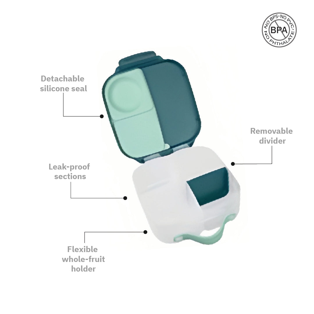 The flexi whole fruit holder stretches around the fruit so you can secure large fruits inside the lunchbox. 2 leak-proof compartments seal separately so pack a mixture of wet and dry foods such as puree, yoghurt and dips has never been easier.